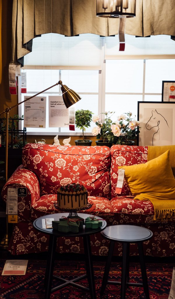 Wallpaper: comfort, house, warm, sofa, plaid, cake, lamp - 600x1024