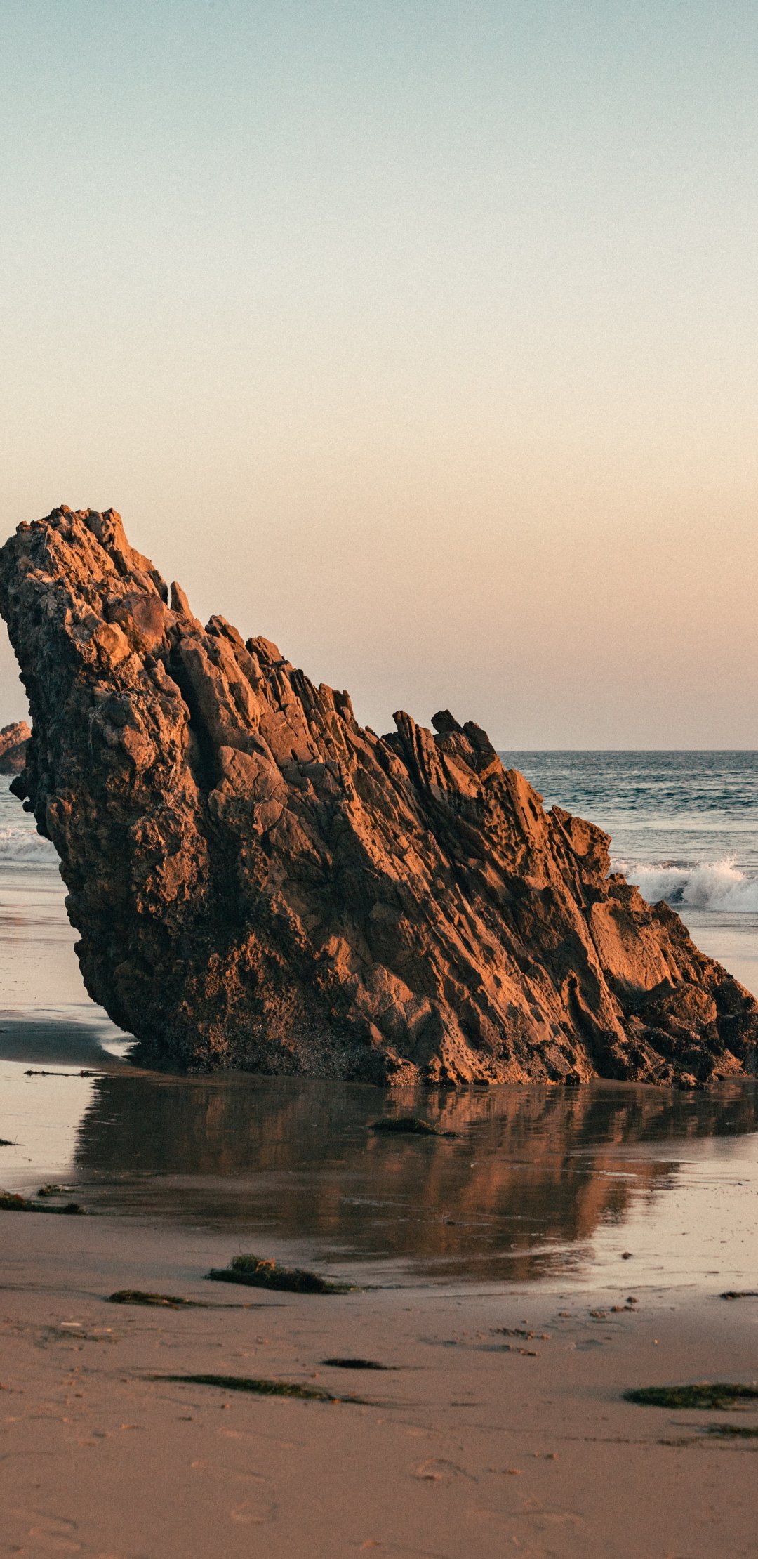 Wallpaper: stone, scale, sand, wave, beach, lump - 1080x2220