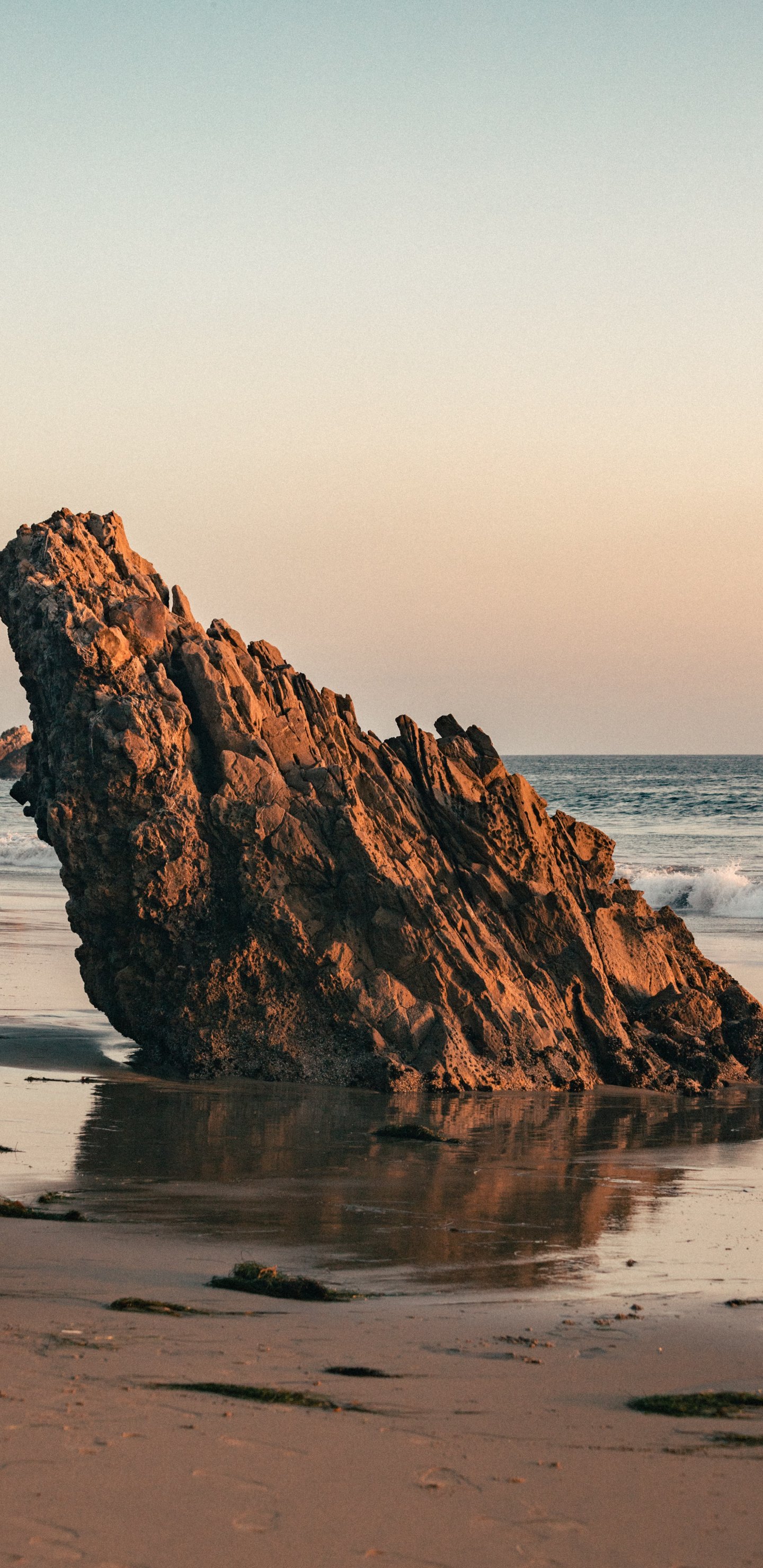 Wallpaper: stone, scale, sand, wave, beach, lump - 1440x2960