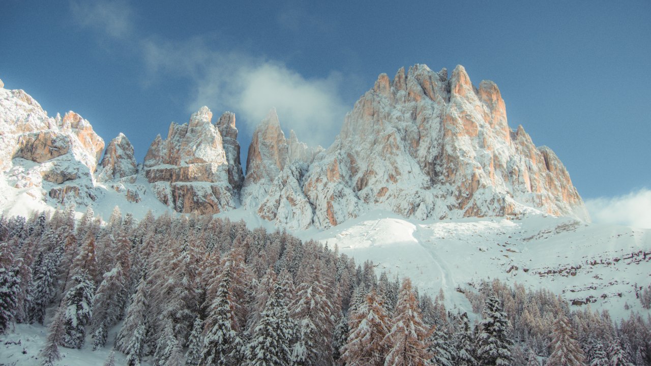 Wallpaper: mountains, snowy hills, trees, snow, path, winter - 1280x720