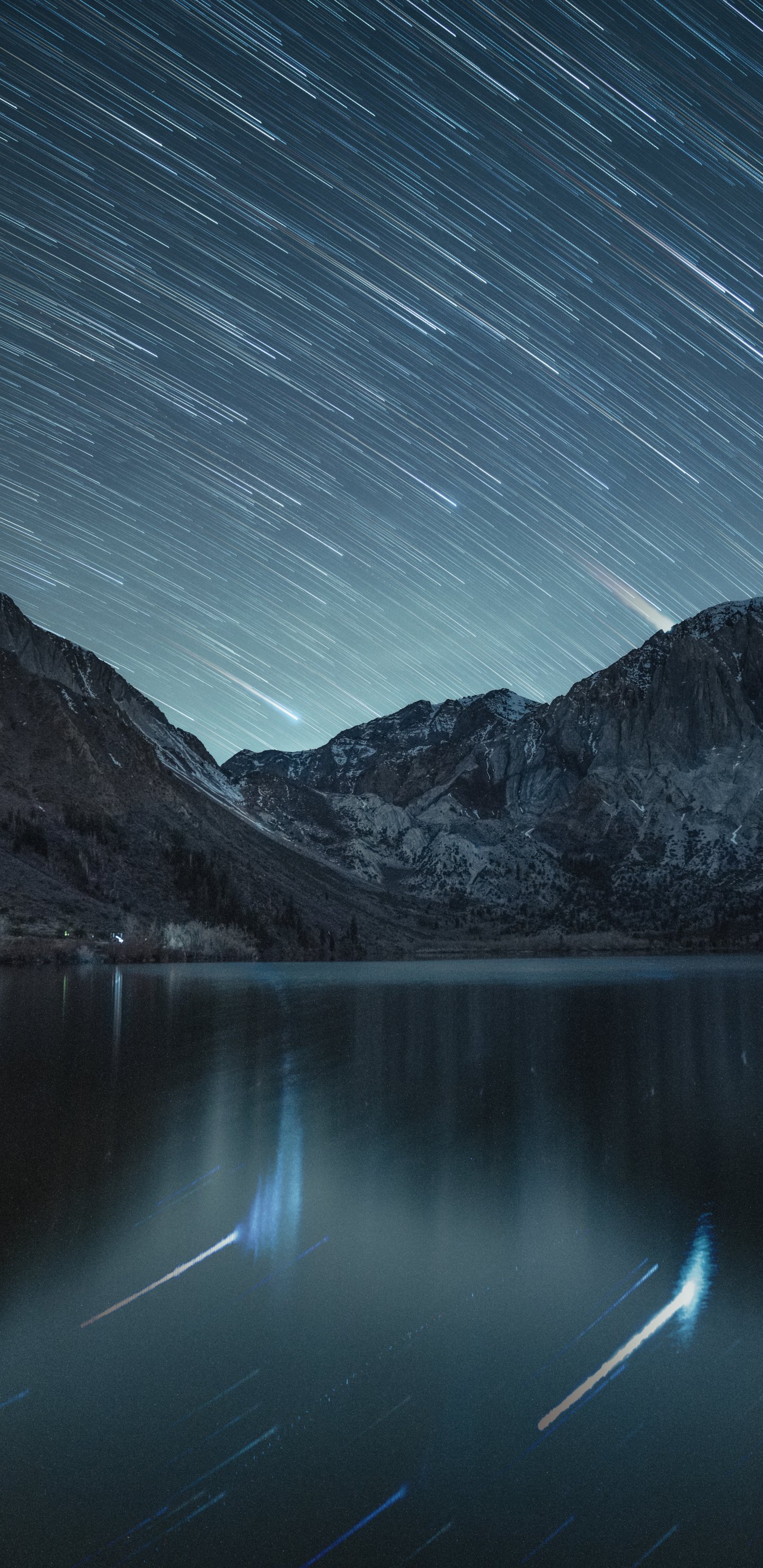 Wallpaper: stars, stars are falling, long exposure, lake, mountain lake, mountains - 1440x2960