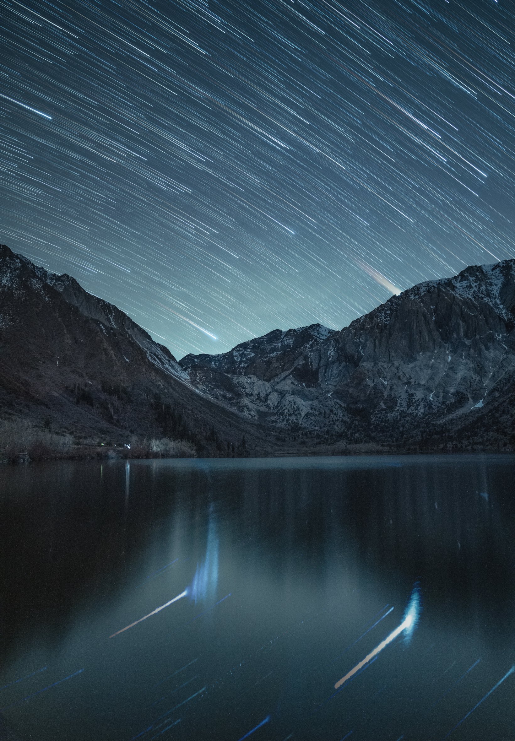 Wallpaper: stars, stars are falling, long exposure, lake, mountain lake, mountains - 1640x2360