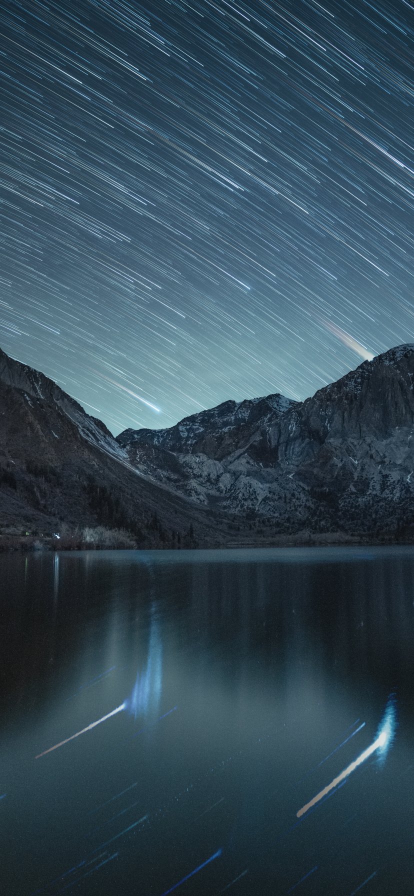 Wallpaper: stars, stars are falling, long exposure, lake, mountain lake, mountains - 828x1792