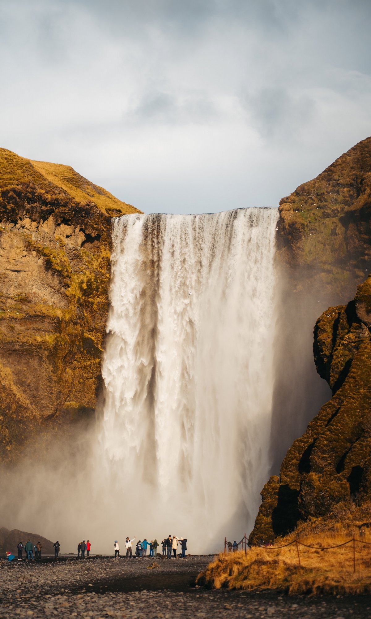 Wallpaper: waterfall, tourists, water, rocks - 1200x2000
