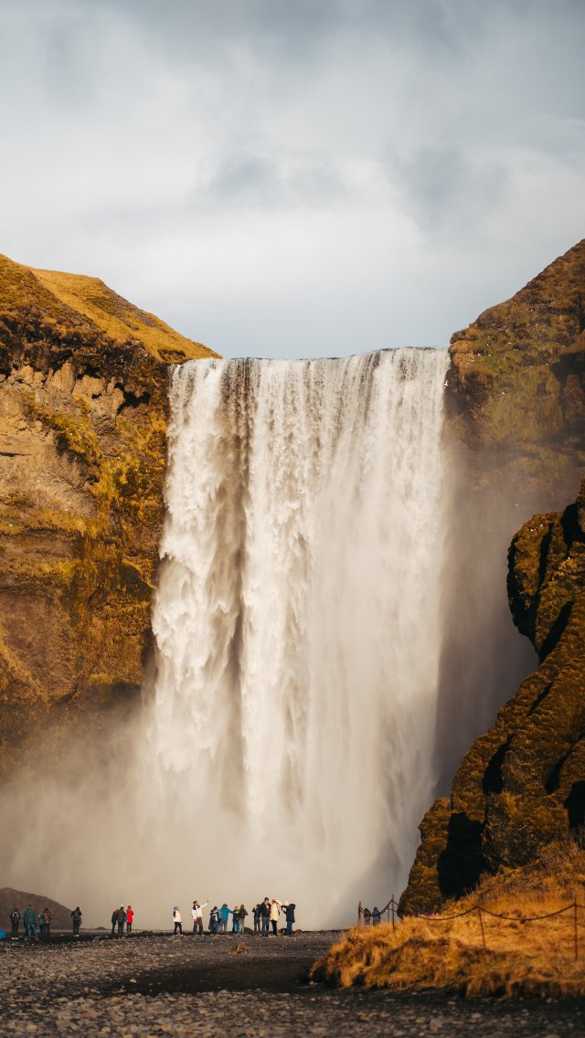 Wallpaper: waterfall, tourists, water, rocks - 640x1136