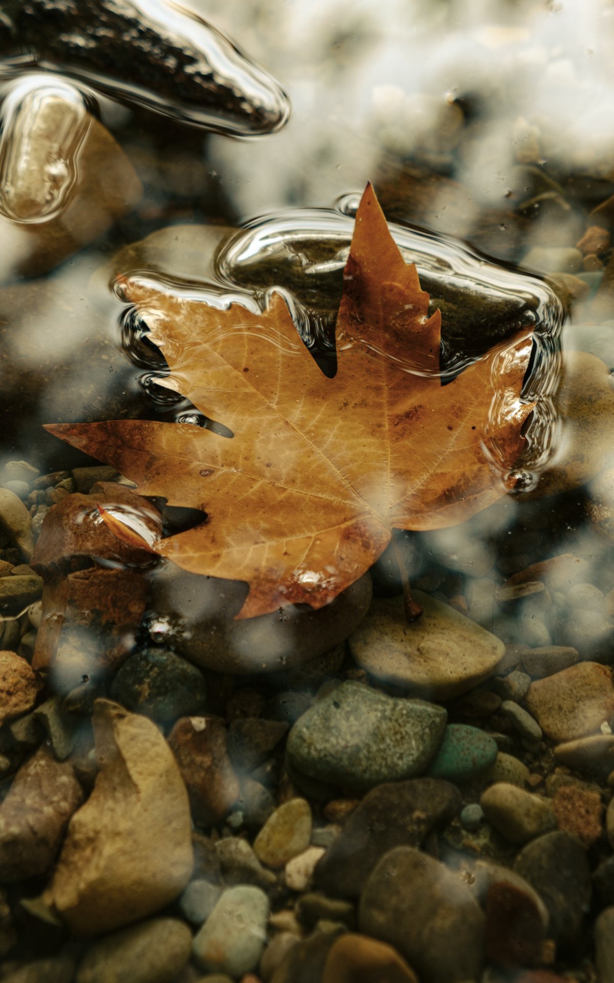 Wallpaper: maple leaf, sheet, yellow leaf, autumn, puddle, water, stones - 1200x1920