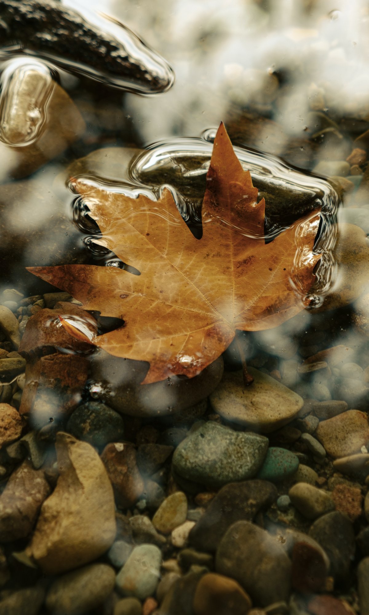 Wallpaper: maple leaf, sheet, yellow leaf, autumn, puddle, water, stones - 1200x2000