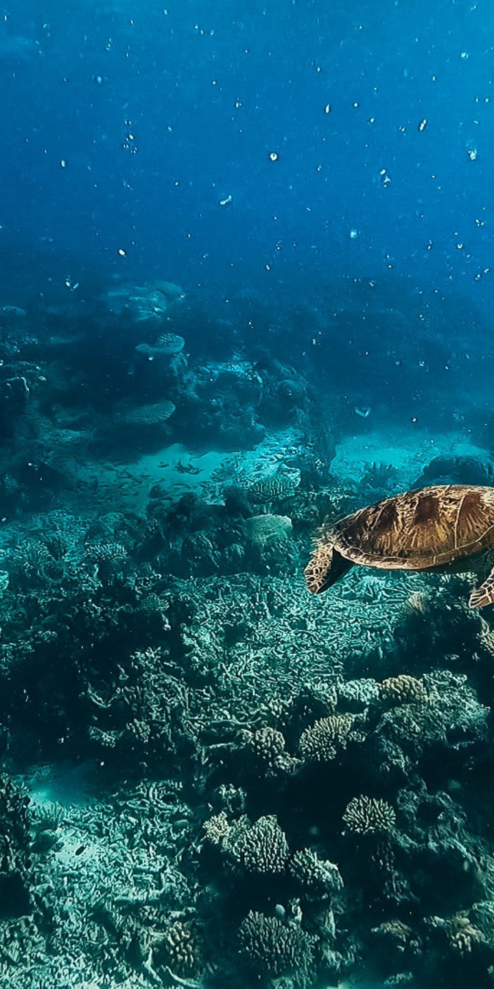 Wallpaper: turtle, underwater world, scuba diver, water, depth, coral - 720x1440