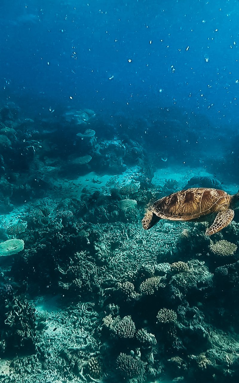 Wallpaper: turtle, underwater world, scuba diver, water, depth, coral - 800x1280