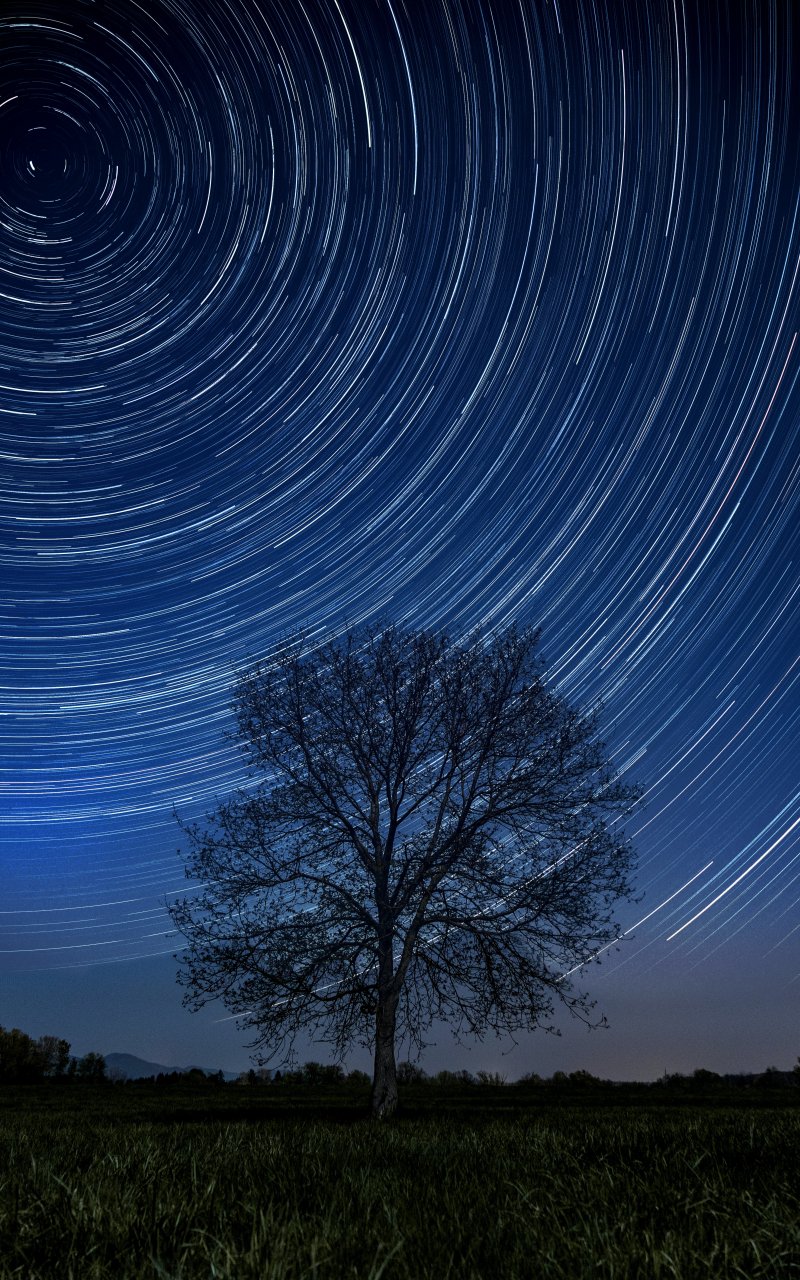 Wallpaper: tree, night, stars, long exposure, grass - 800x1280