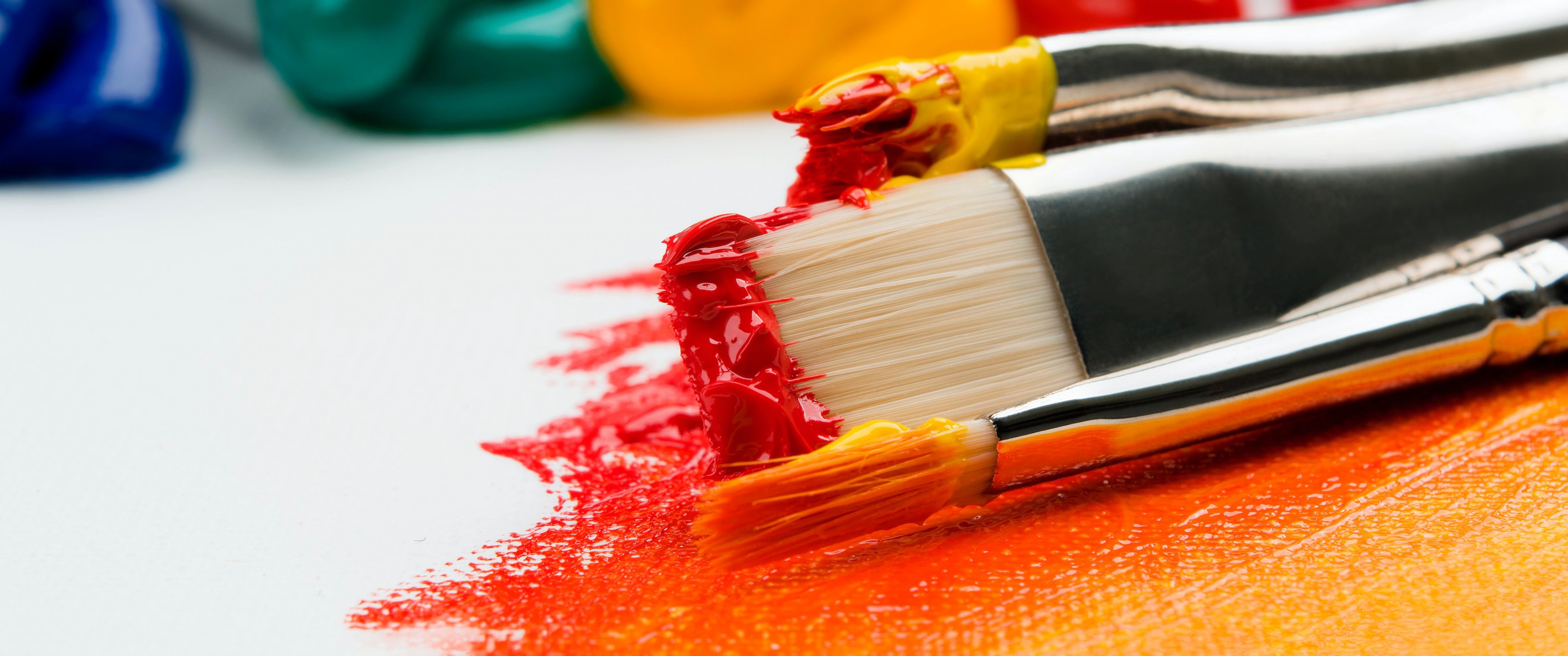 Wallpaper: brush, paint, bright colors, canvas - 3440x1440