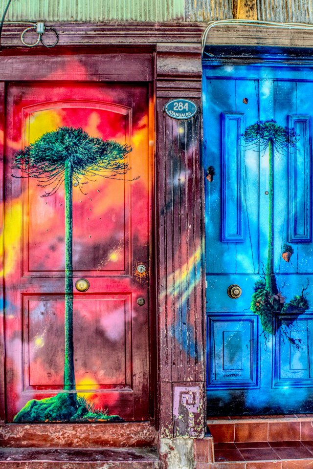 Wallpaper: door, art, street painting, tree - 640x960