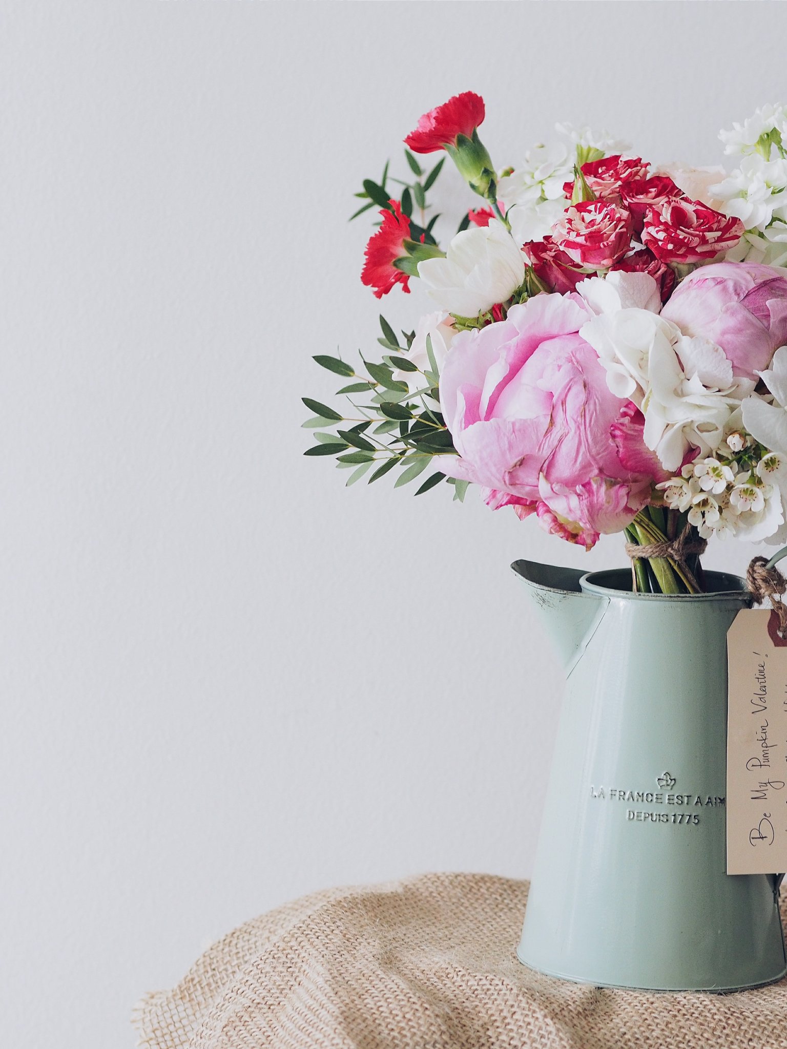 Wallpaper: bouquet, aesthetics, vase, peonies, roses - 1536x2048
