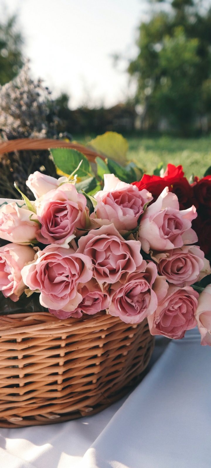 Wallpaper: flowers, cart, roses, picnic - 720x1600