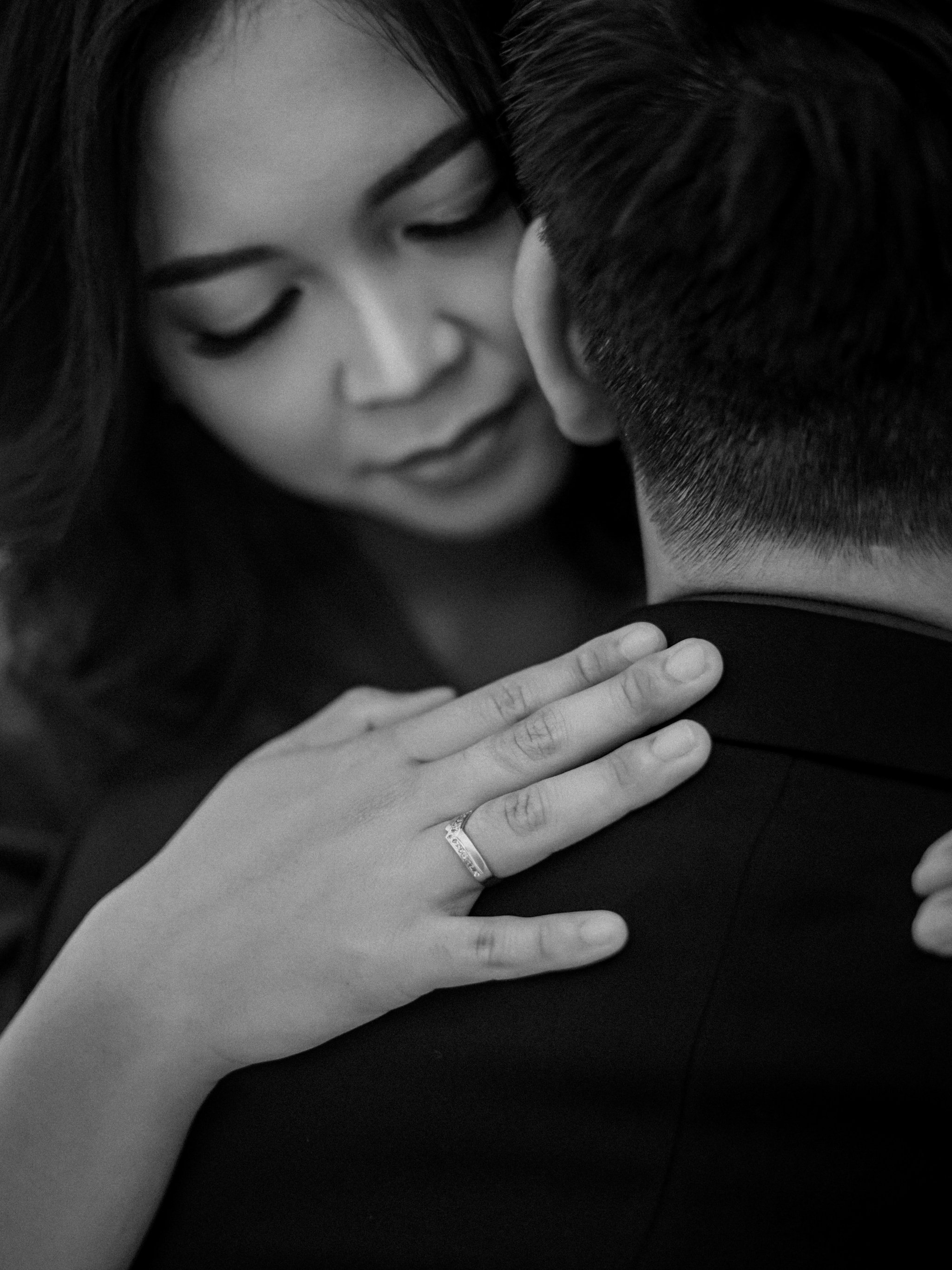 Wallpaper: love, girl, guy, ring, black and white photo, romance - 2048x2732