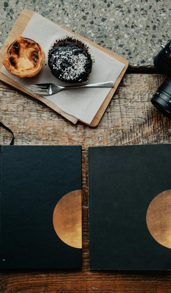 Wallpaper: photo, coffee, camera, daily, table, wood table, cupcakes - 600x1024