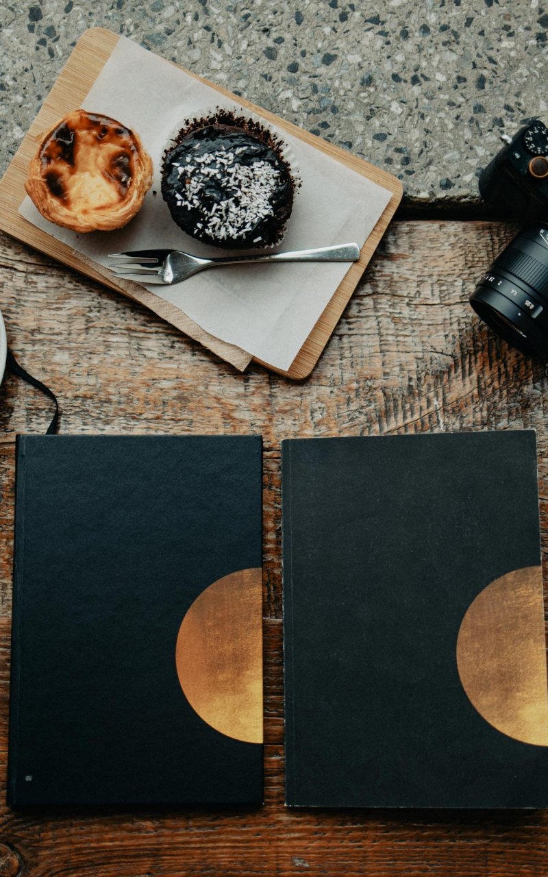 Wallpaper: photo, coffee, camera, daily, table, wood table, cupcakes - 800x1280