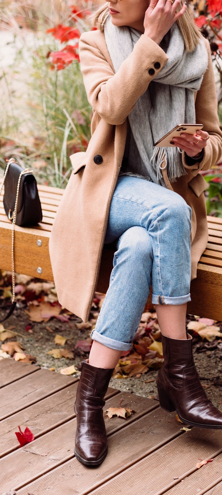 Wallpaper: girl, autumn, coat, bag, autumn leaf, leaf - 720x1600