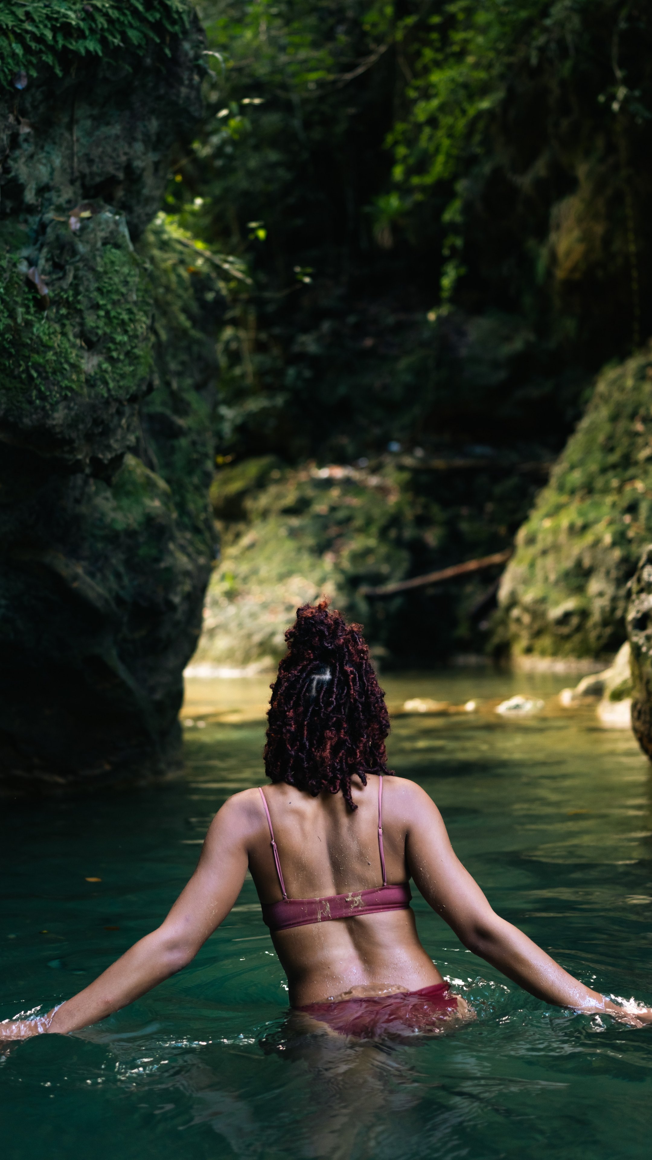 Wallpaper: girl, rest, water, rocks - 2160x3840
