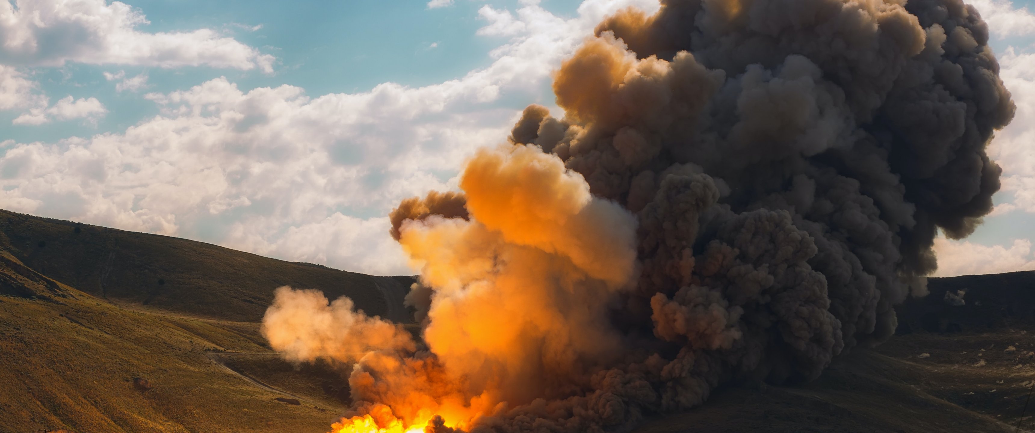 Wallpaper: fire, smoke, smoke cloud, catcher - 3440x1440