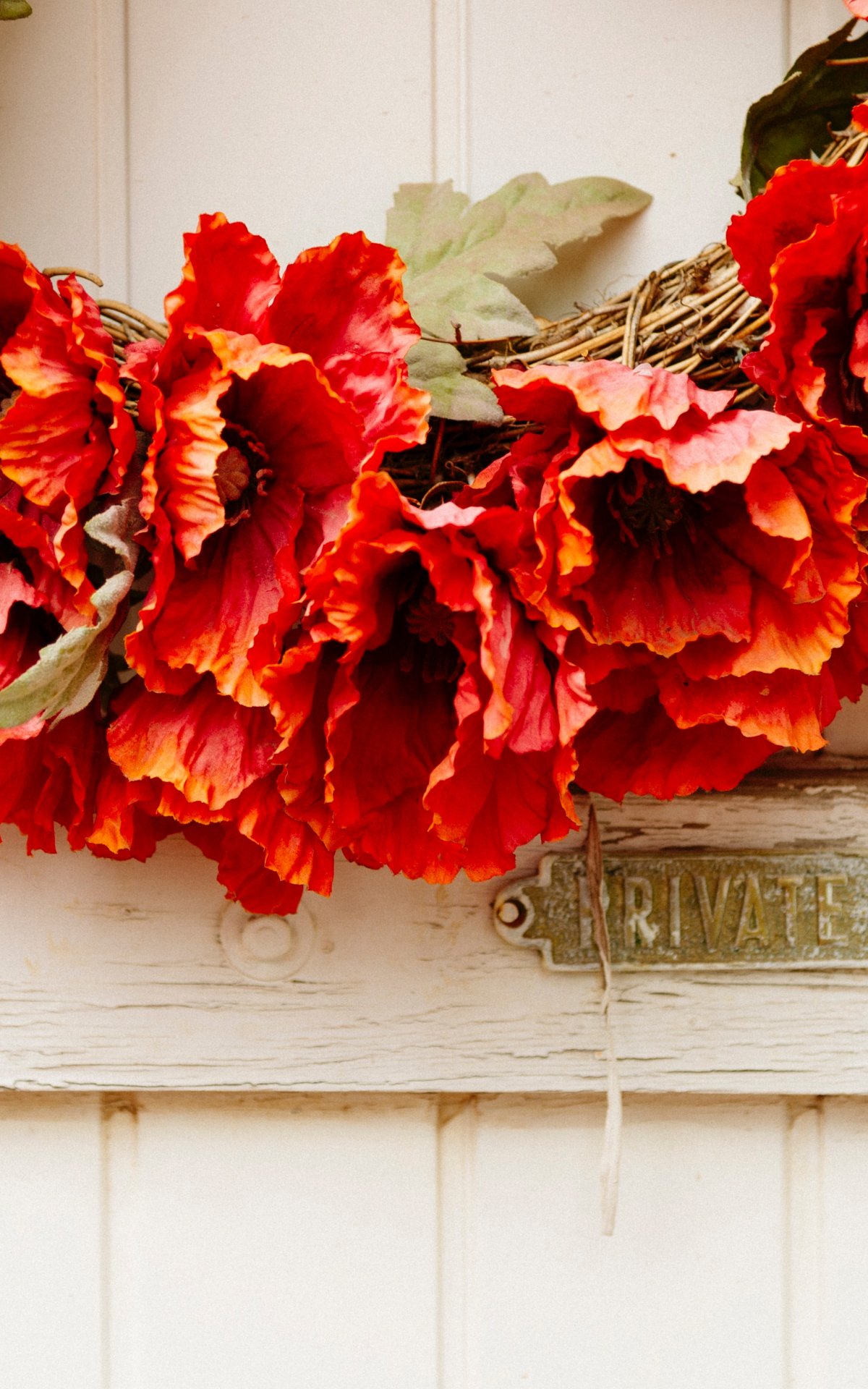 Wallpaper: wreath, flowers, decoration, door, wood door - 1200x1920