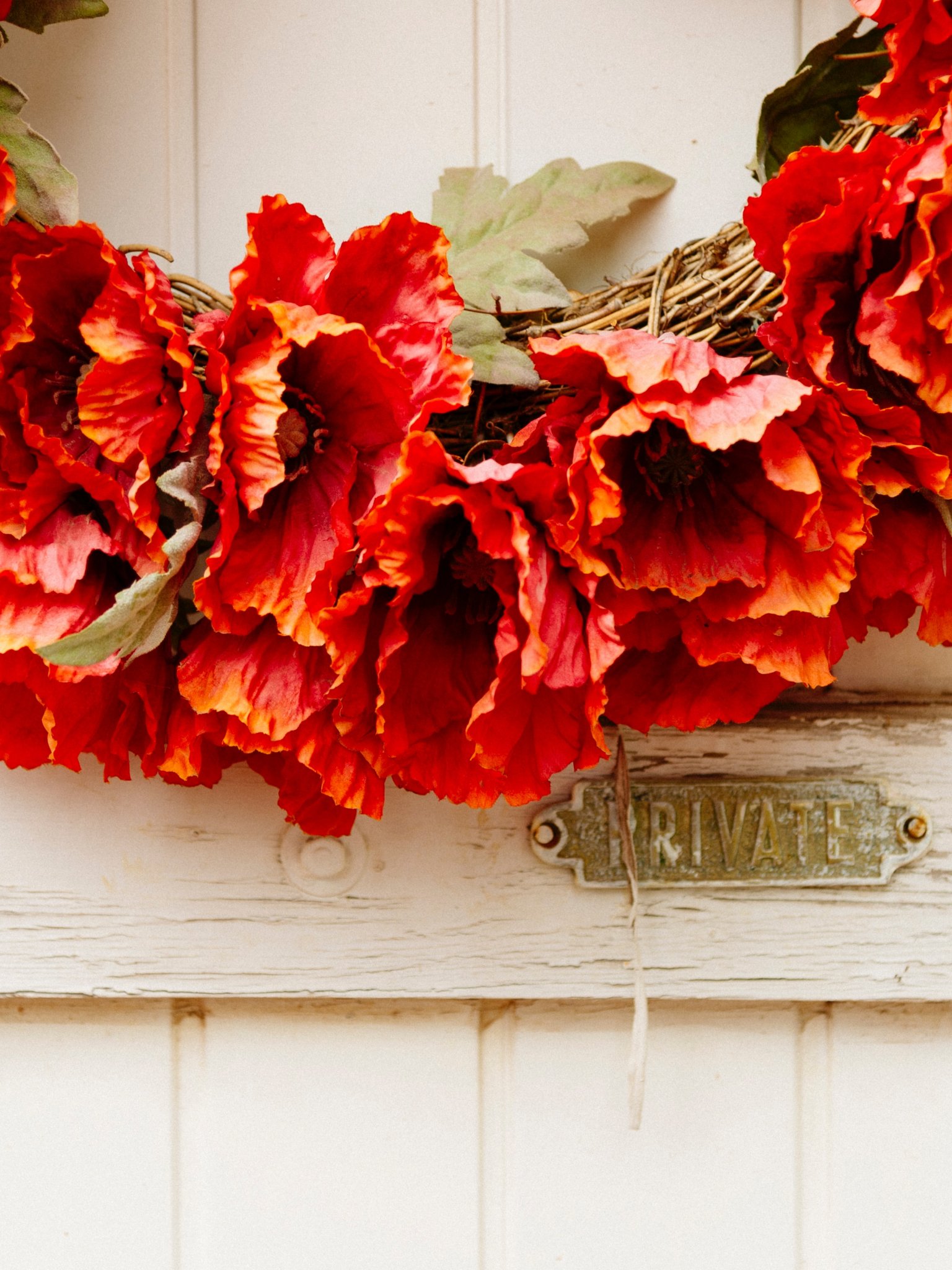 Wallpaper: wreath, flowers, decoration, door, wood door - 1536x2048