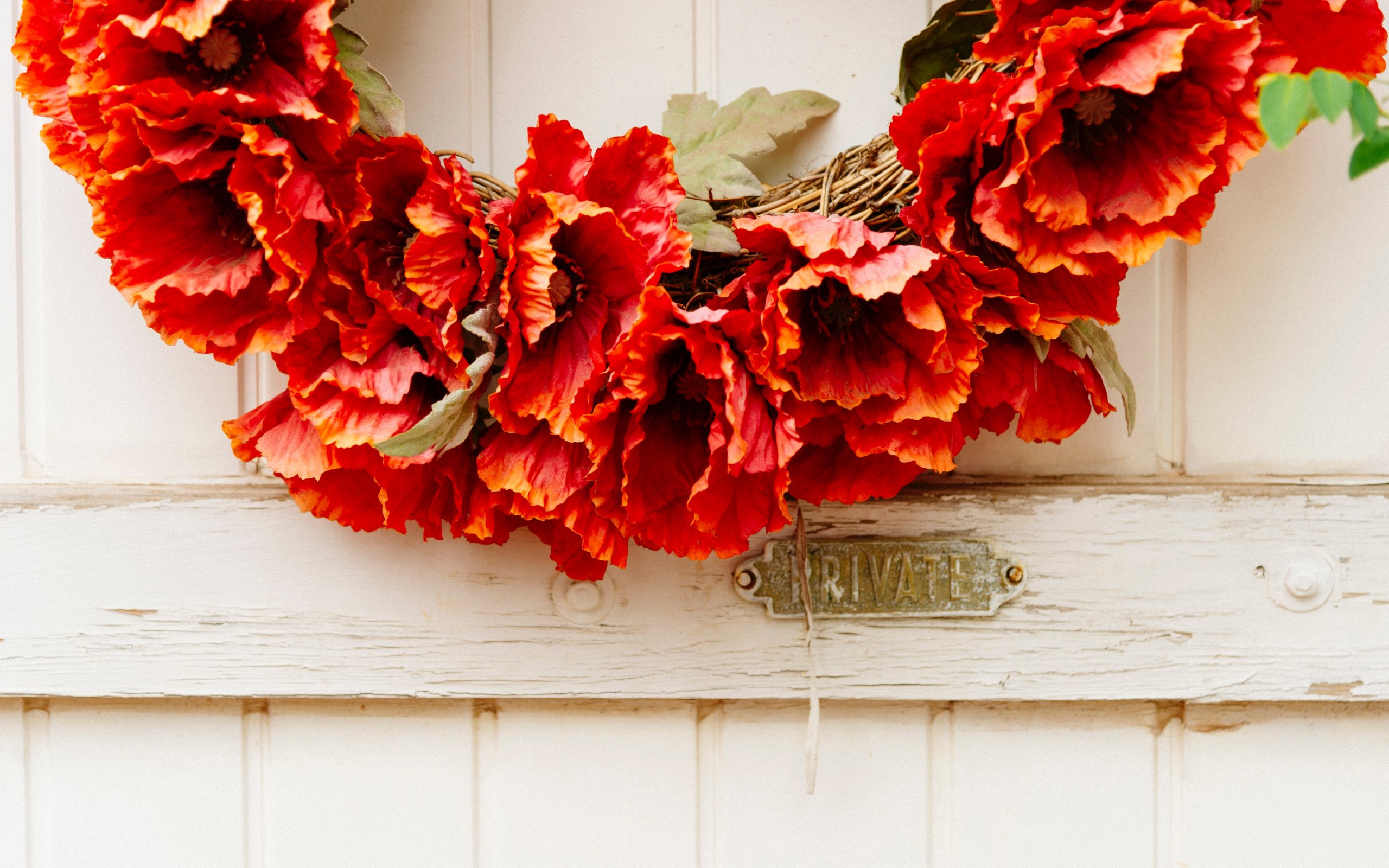 Wallpaper: wreath, flowers, decoration, door, wood door - 2560x1600