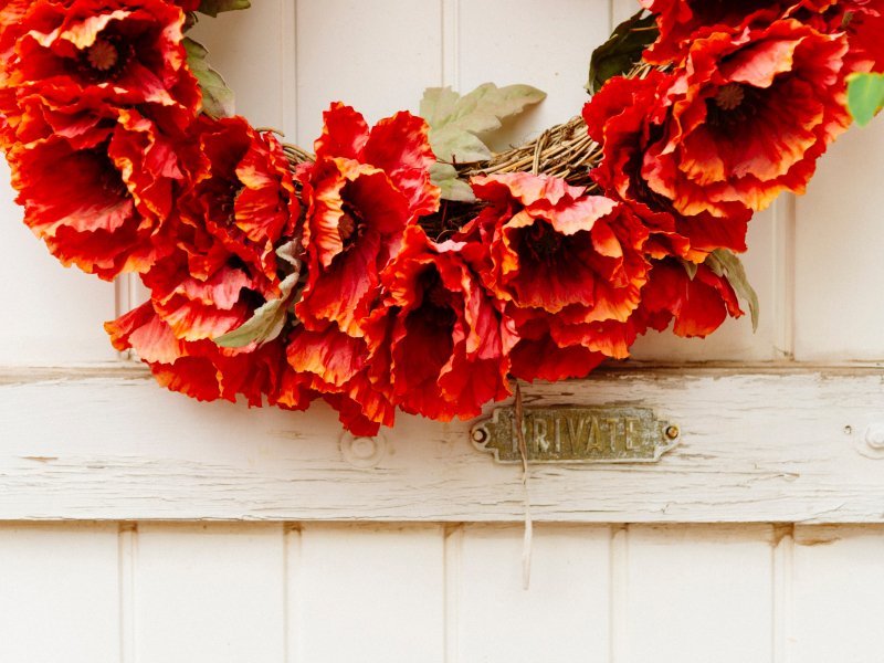 Wallpaper: wreath, flowers, decoration, door, wood door - 800x600