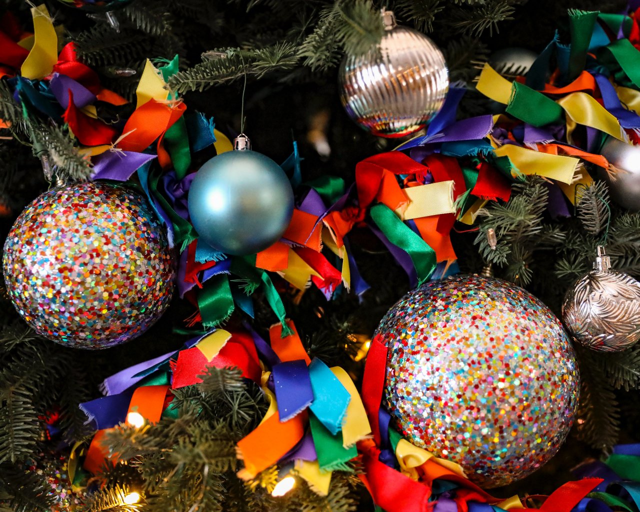 Wallpaper: christmas toys, confetti, bright, holiday, New Year - 1280x1024