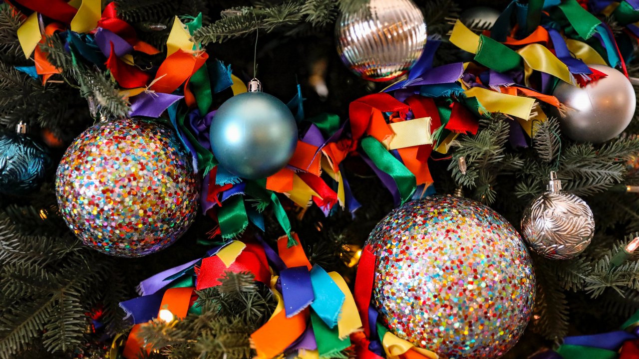 Wallpaper: christmas toys, confetti, bright, holiday, New Year - 1280x720