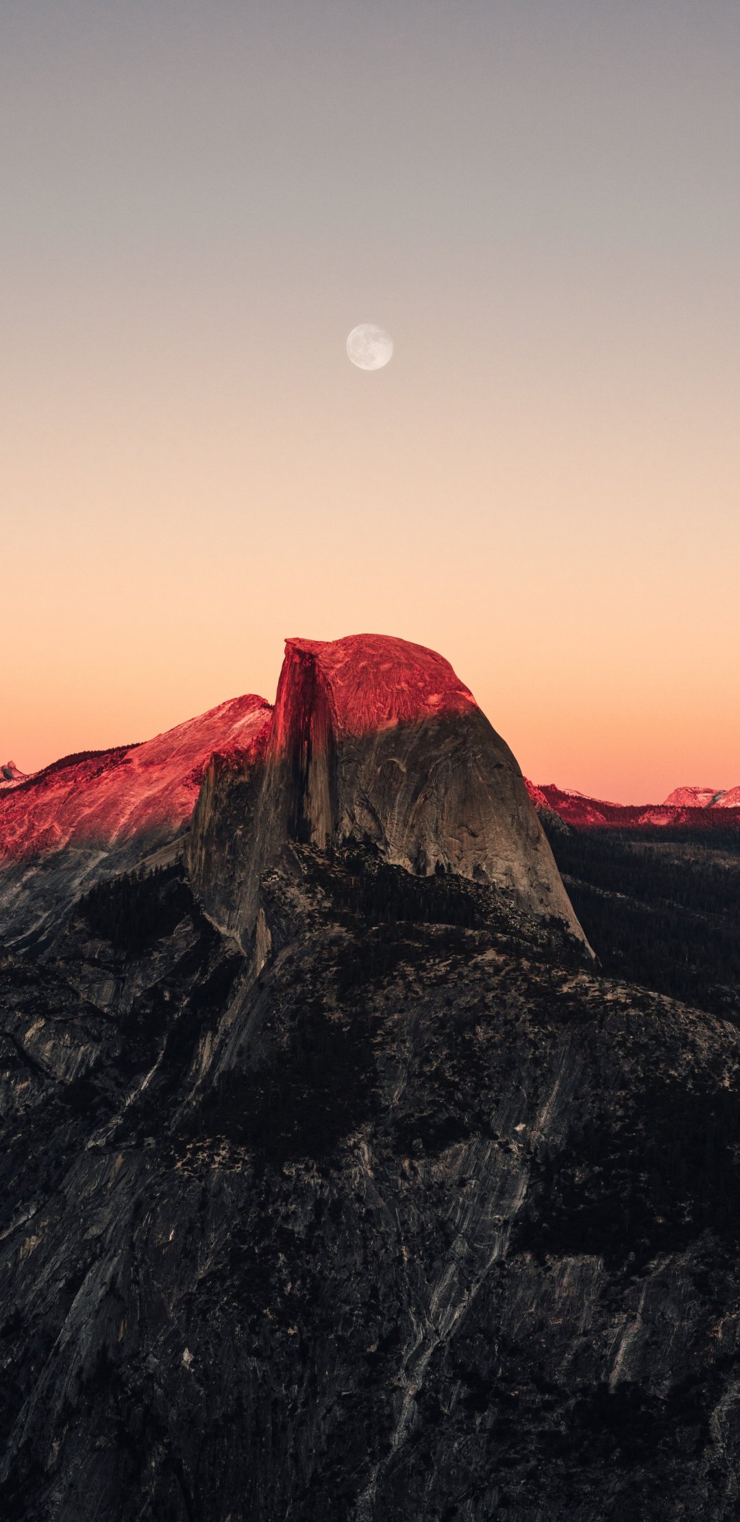Wallpaper: sunset in the mountains, sunset, mountains, moon, rocks - 1080x2220