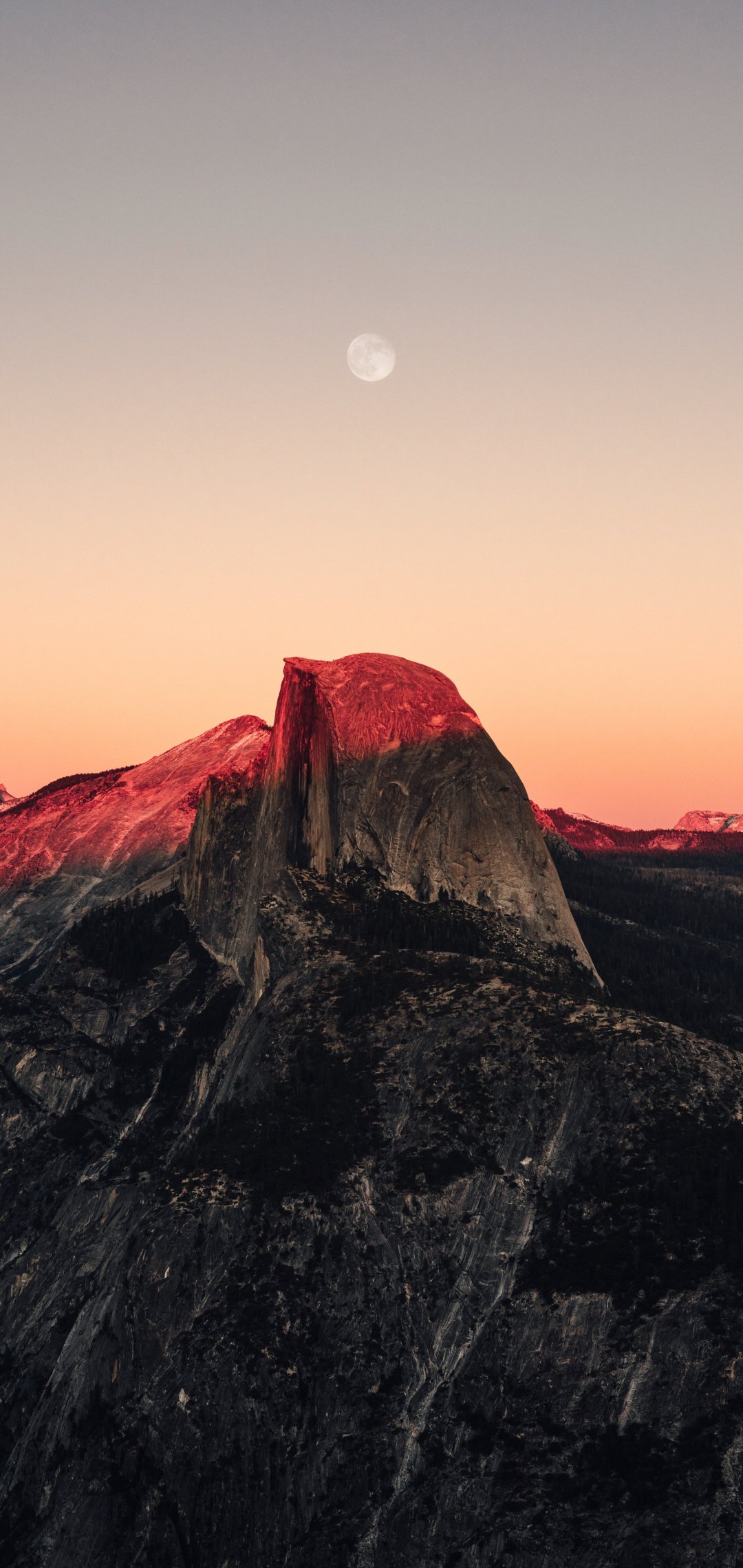Wallpaper: sunset in the mountains, sunset, mountains, moon, rocks - 1080x2280