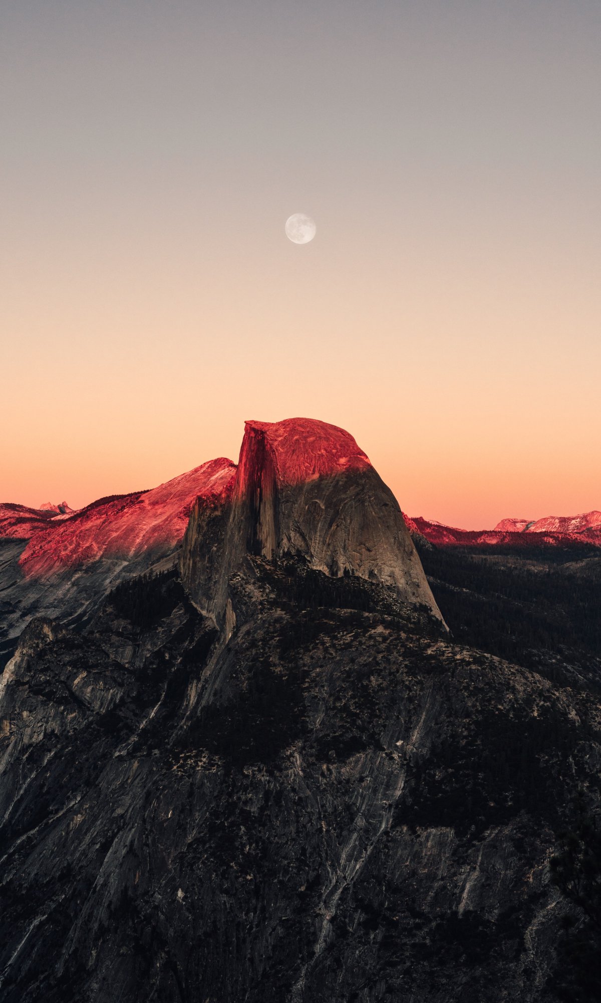 Wallpaper: sunset in the mountains, sunset, mountains, moon, rocks - 1200x2000