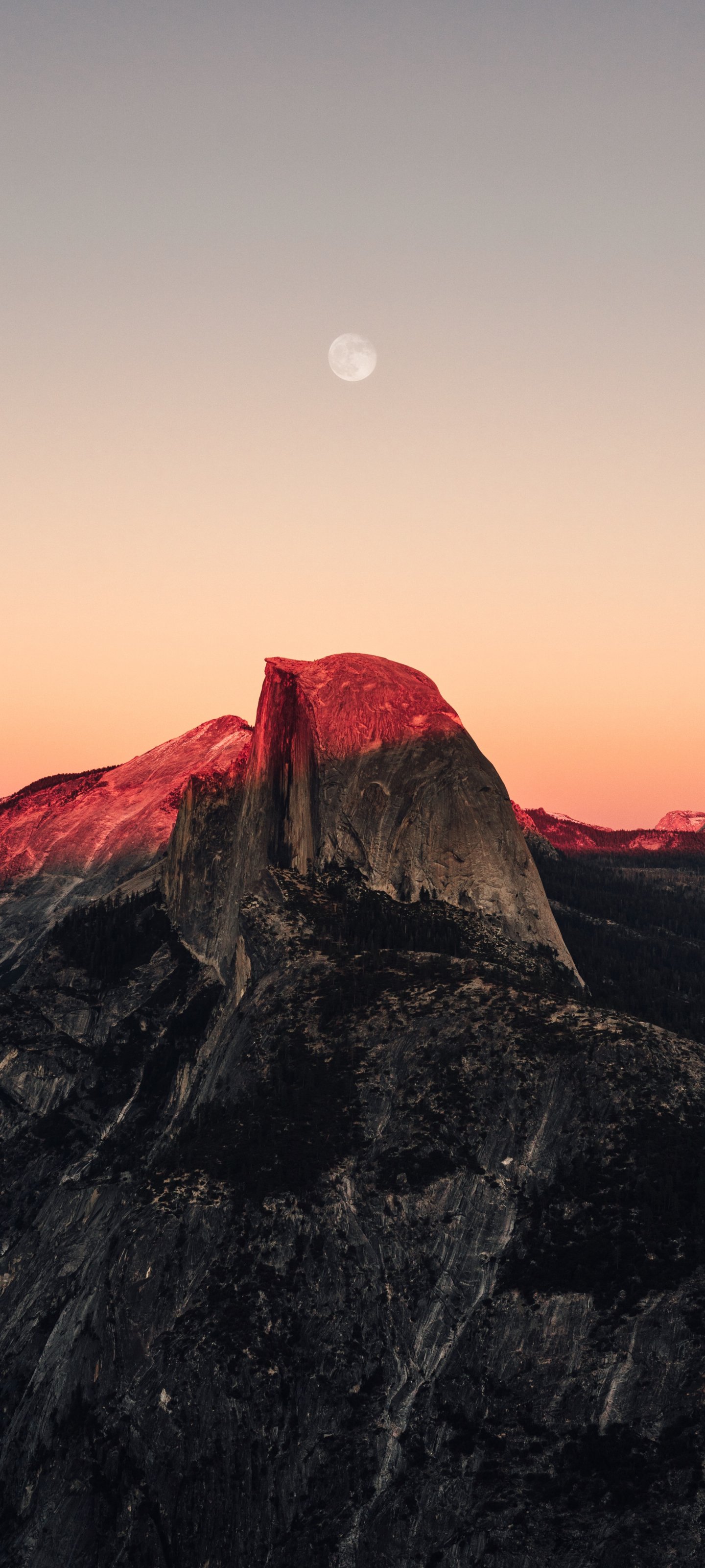 Wallpaper: sunset in the mountains, sunset, mountains, moon, rocks - 1440x3200