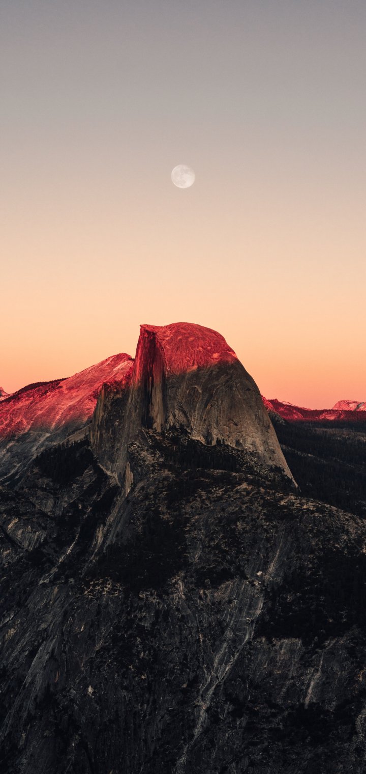 Wallpaper: sunset in the mountains, sunset, mountains, moon, rocks - 720x1520