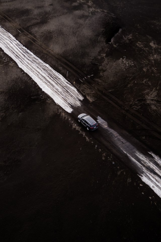 Wallpaper: road, machine, snow, top view - 640x960