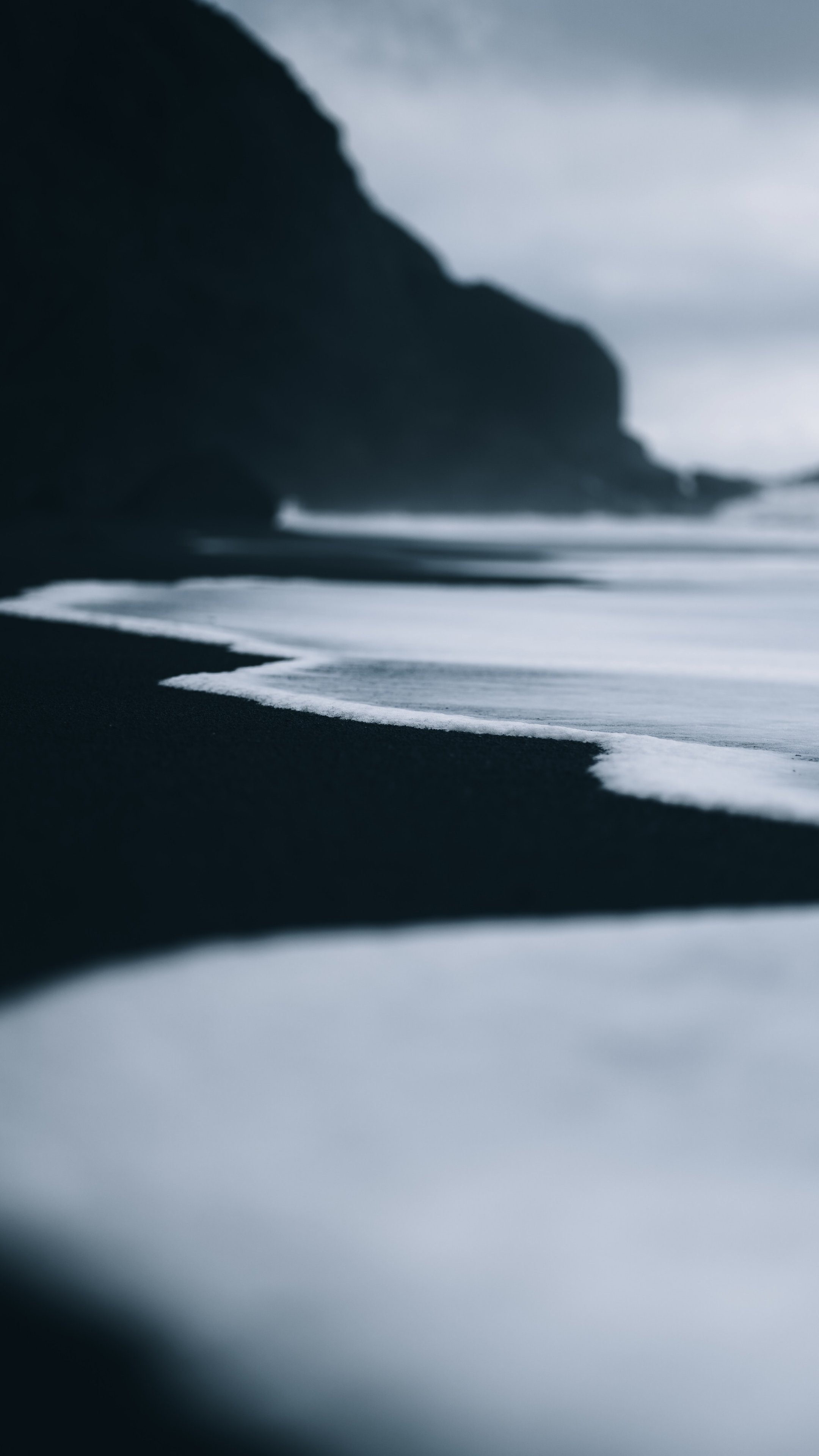 Wallpaper: black sand, sand, sea, water, surf - 2160x3840