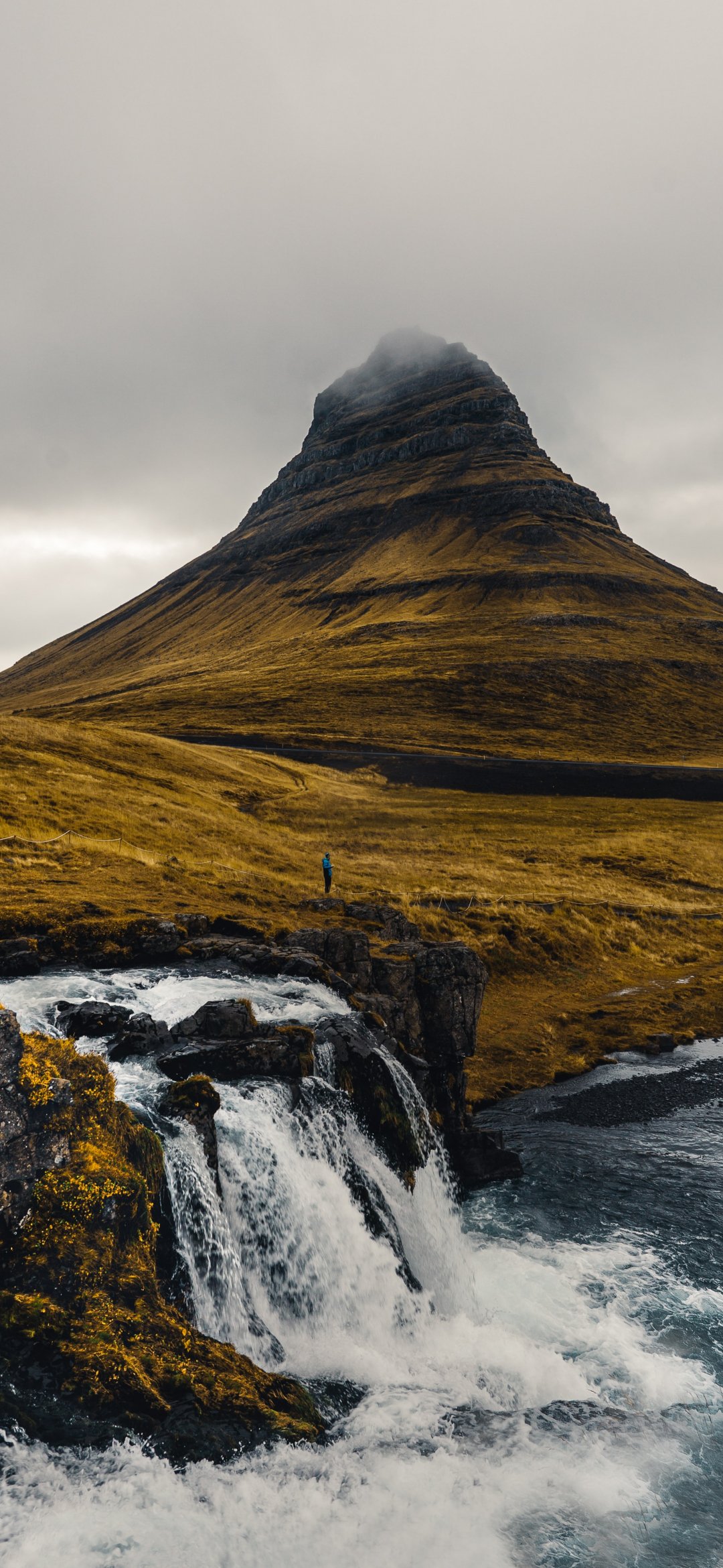Wallpaper: mountain, river, sea, autumn - 1080x2340