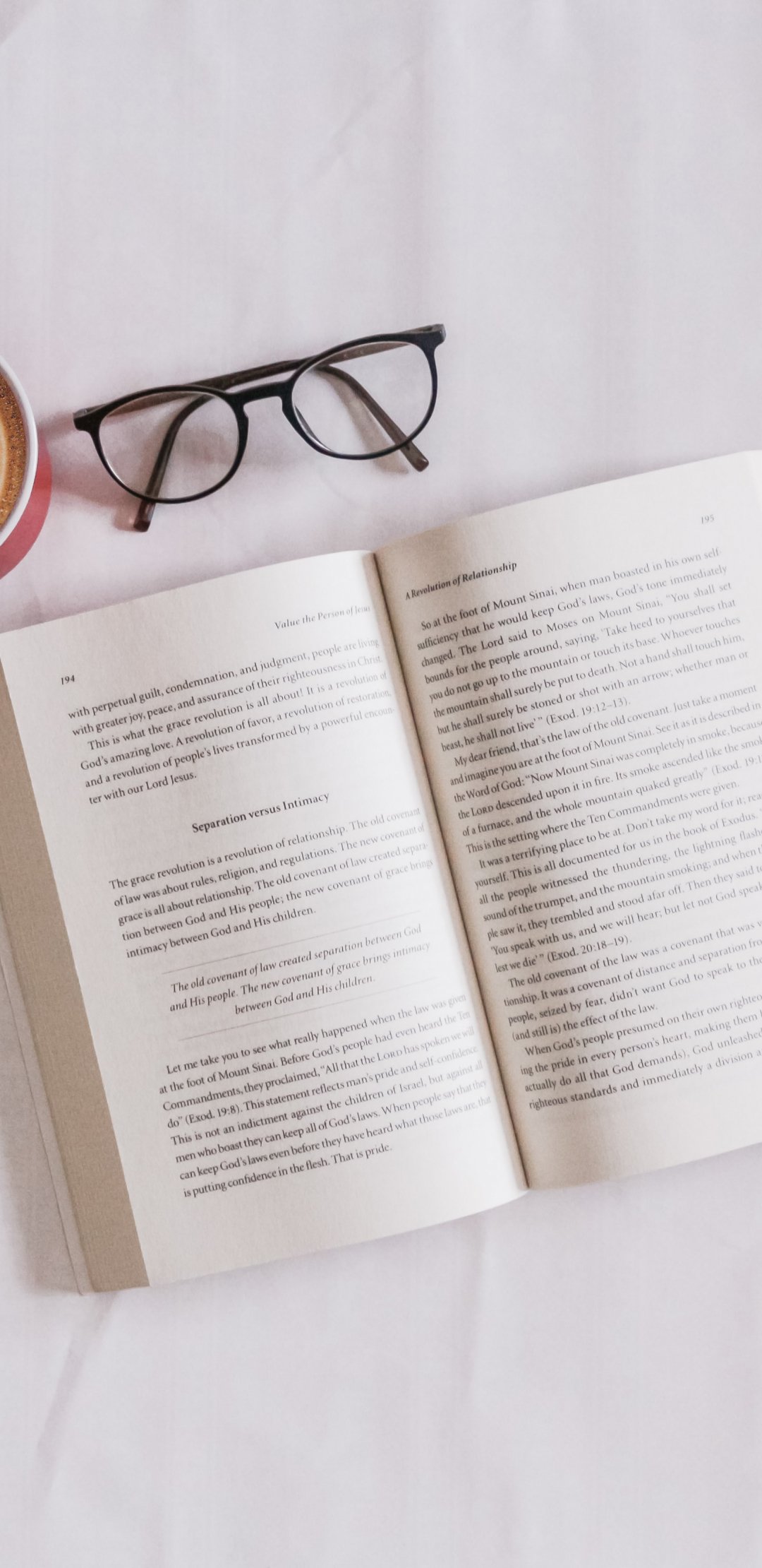 Wallpaper: book, glasses, coffee, leisure - 1080x2220