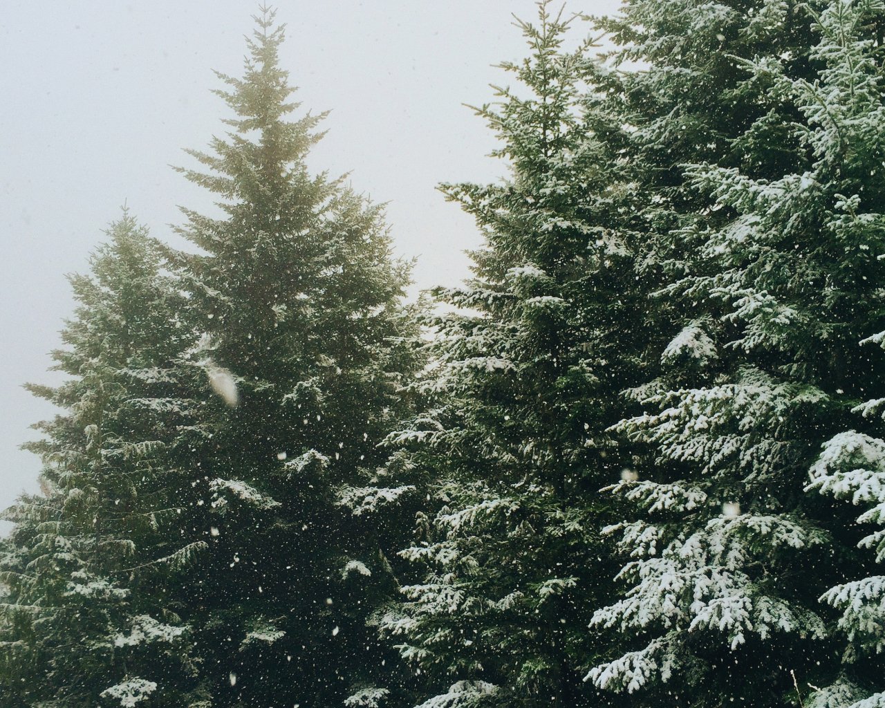 Wallpaper: spruce, snowfall, winter - 1280x1024