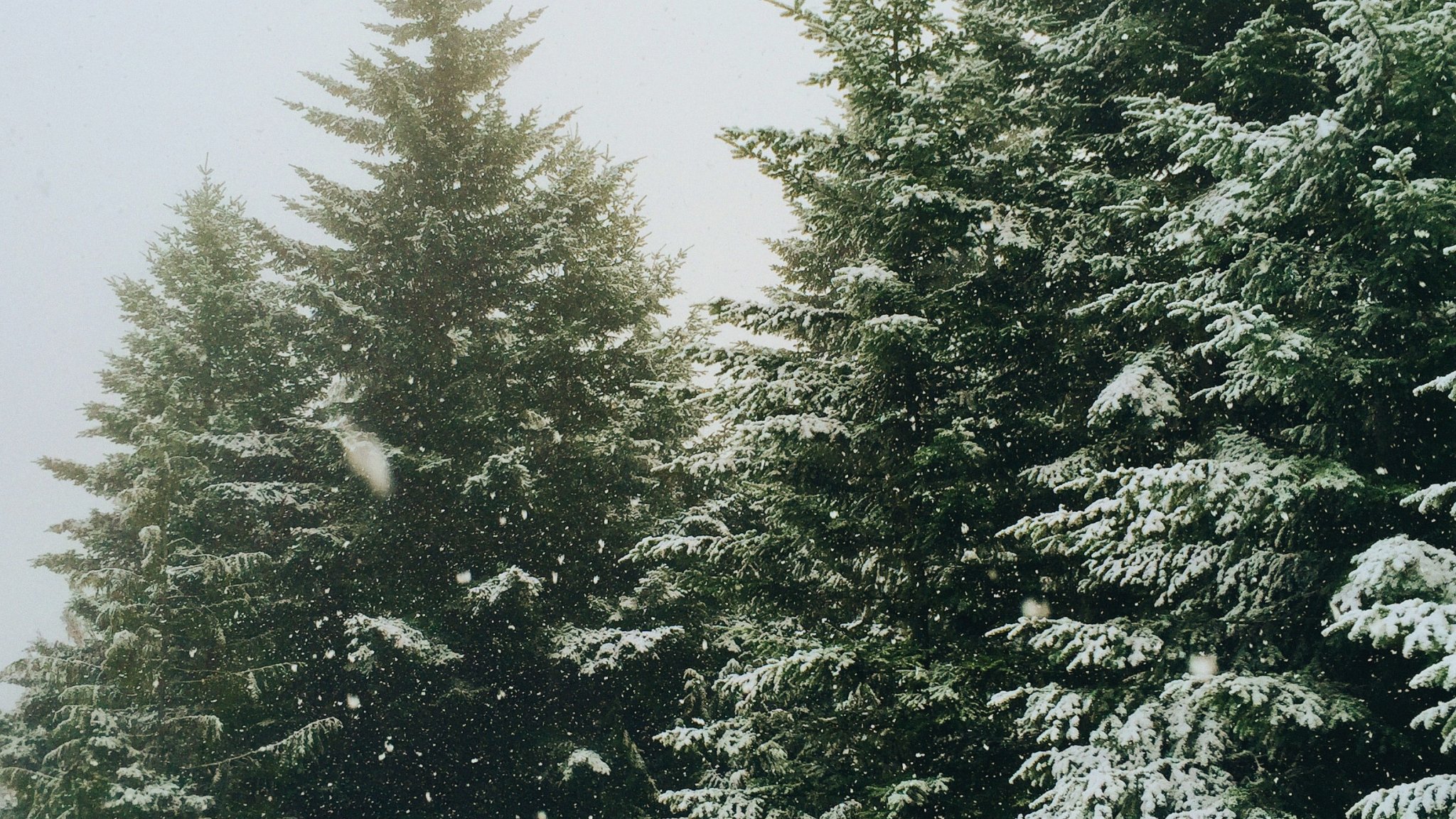 Wallpaper: spruce, snowfall, winter - 2048x1152