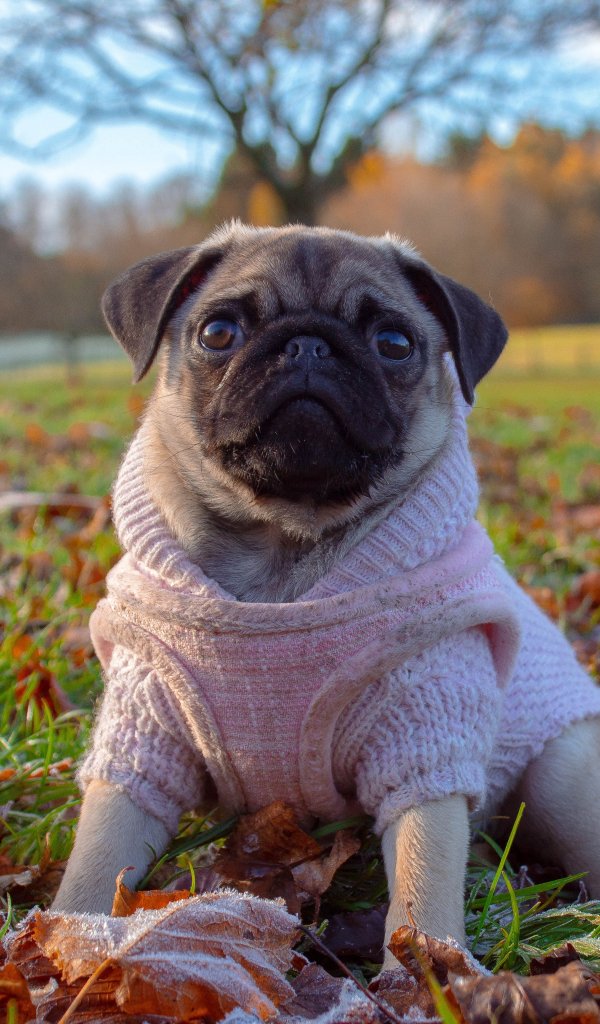 Wallpaper: pug, autumn - 600x1024