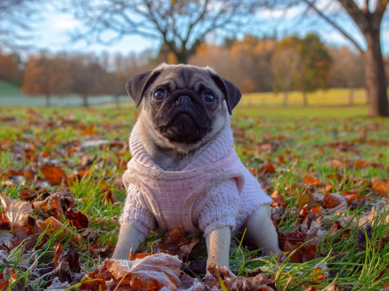 Wallpaper: pug, autumn - 800x600