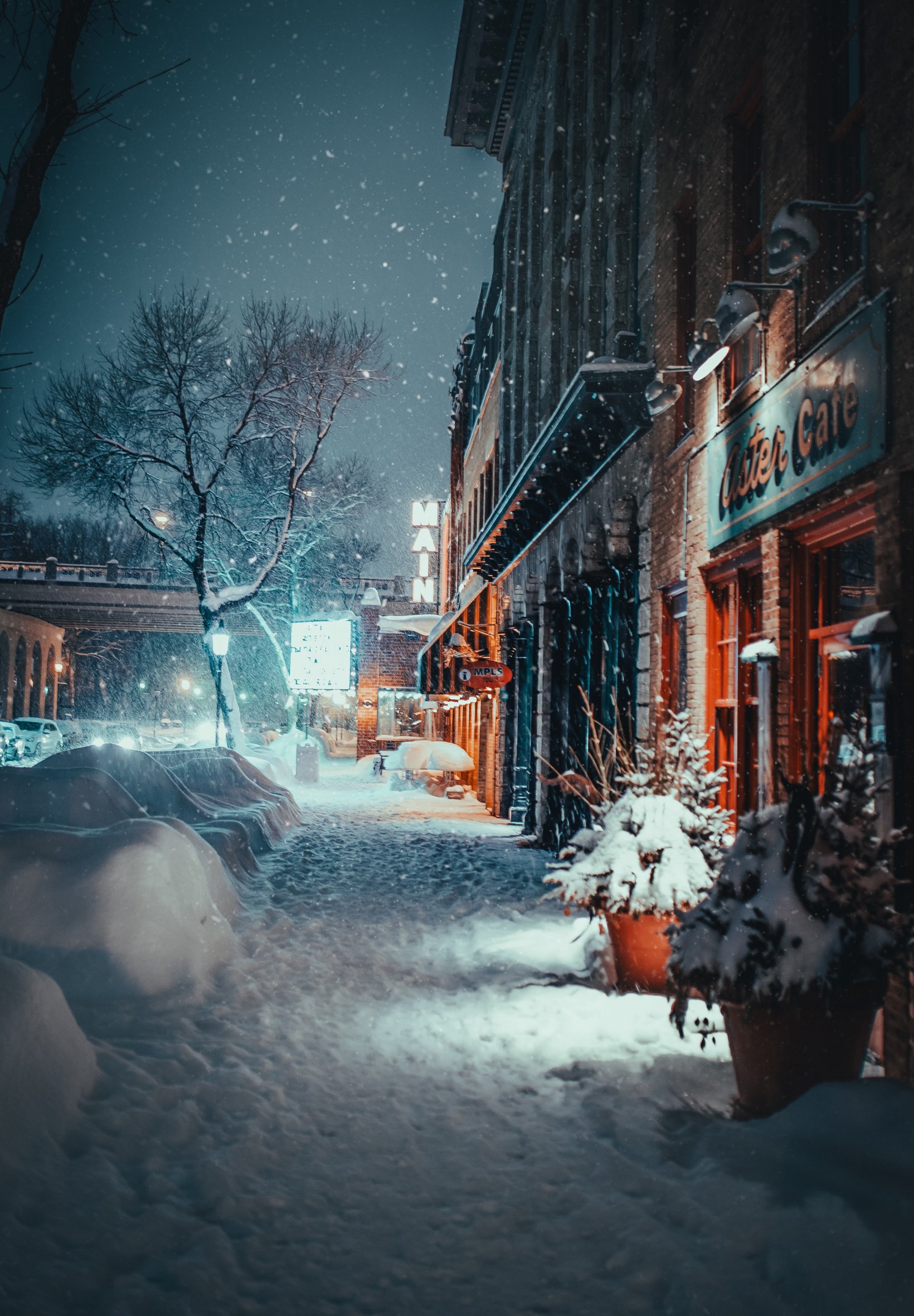 Wallpaper: street, snowfall, winter - 1640x2360