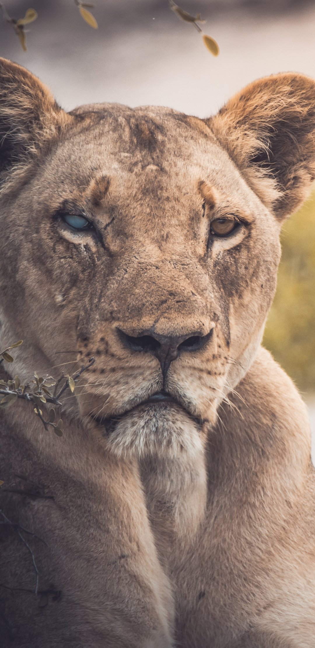 Wallpaper: lioness, look, scar - 1080x2220