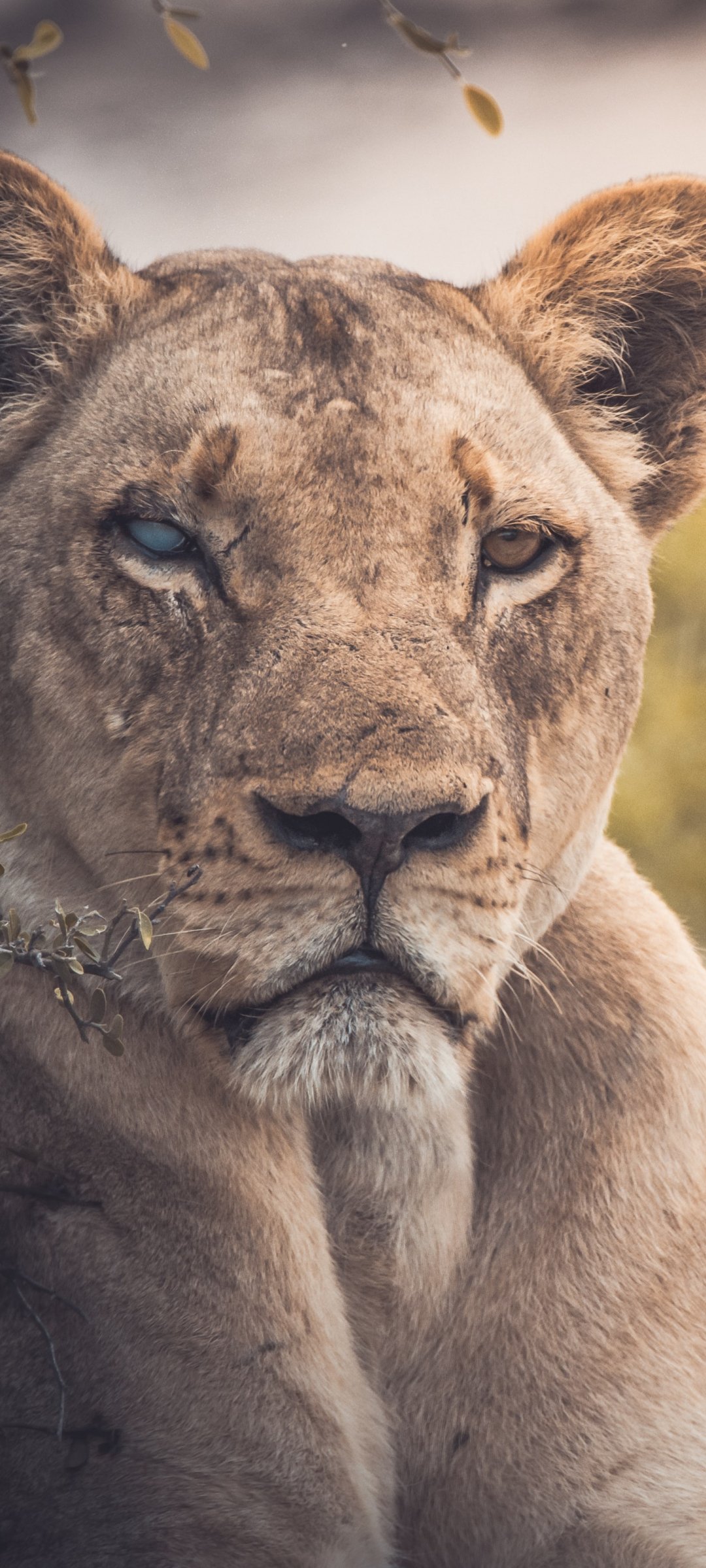 Wallpaper: lioness, look, scar - 1080x2400