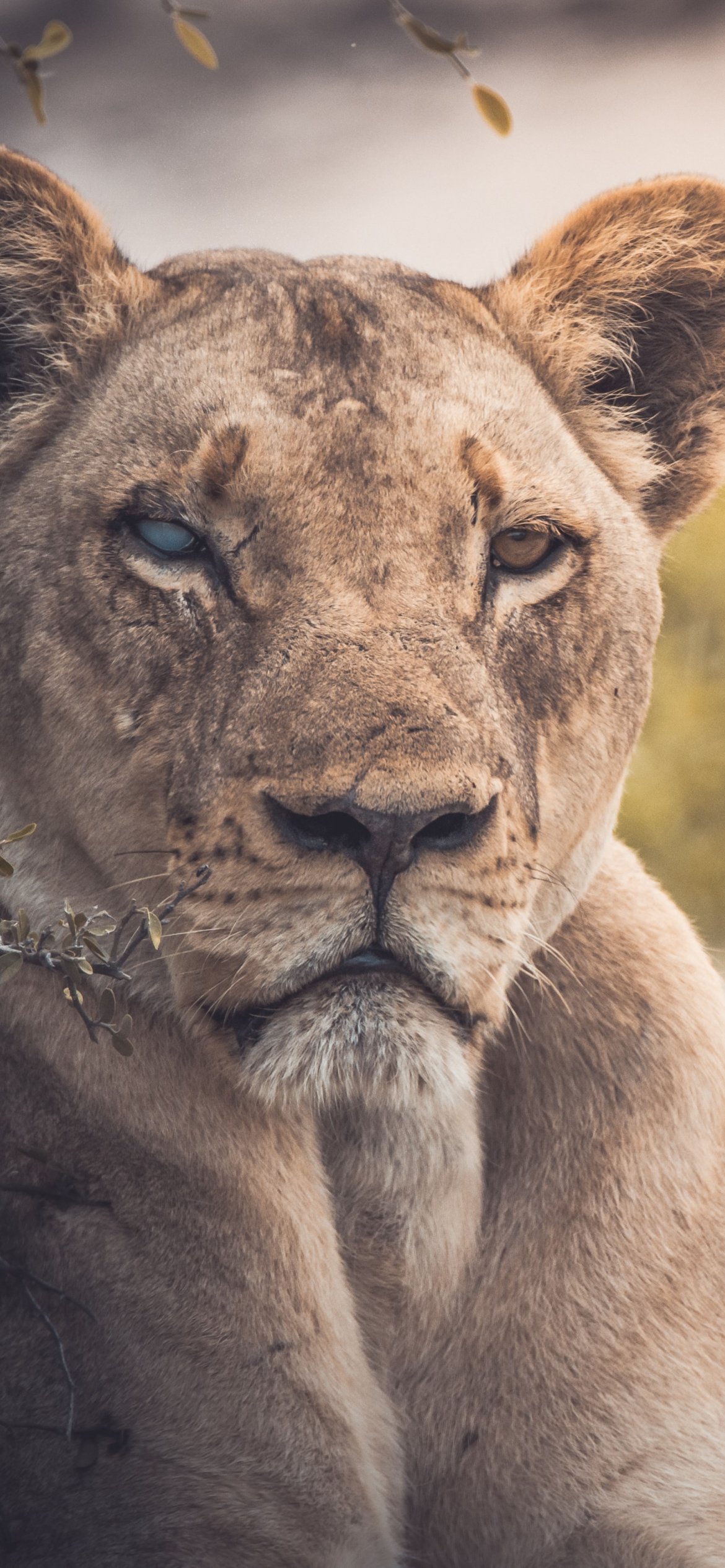 Wallpaper: lioness, look, scar - 1170x2532