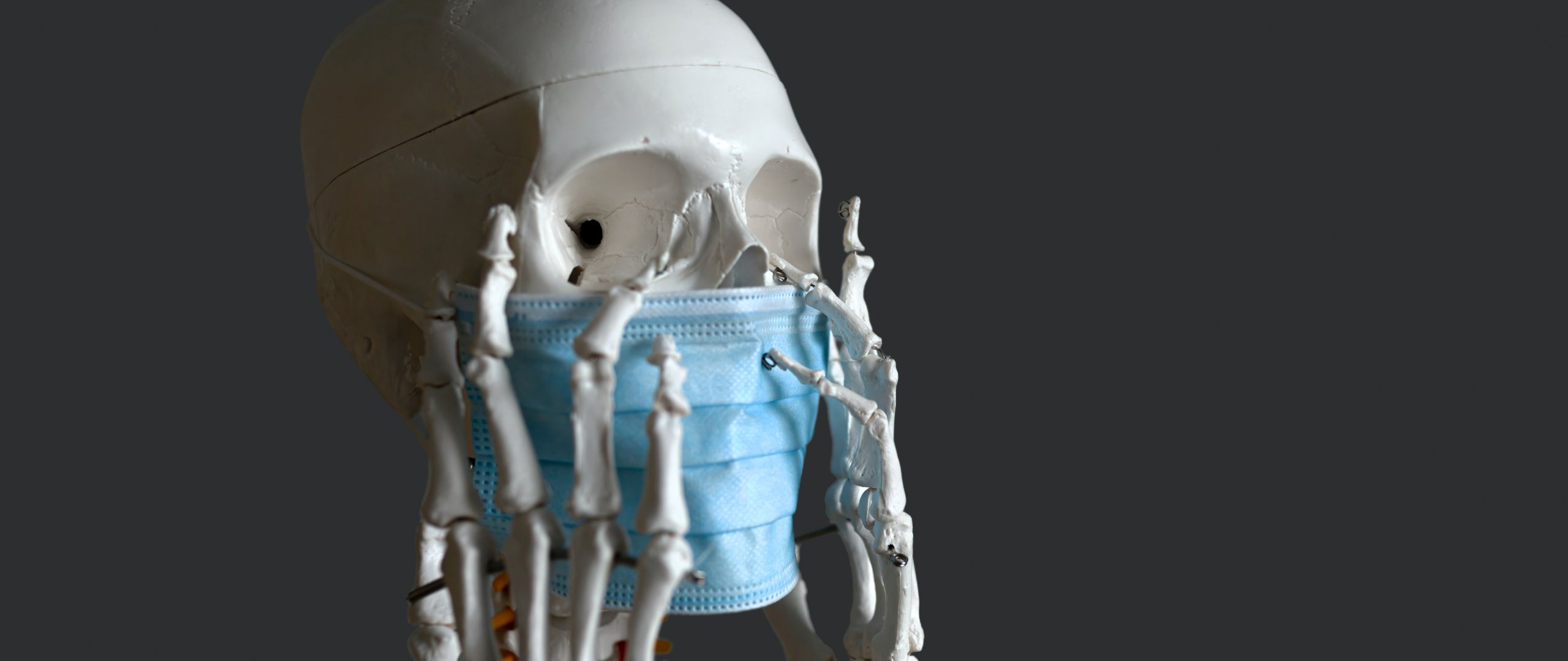 Wallpaper: skeleton, mask, virus - 2560x1080