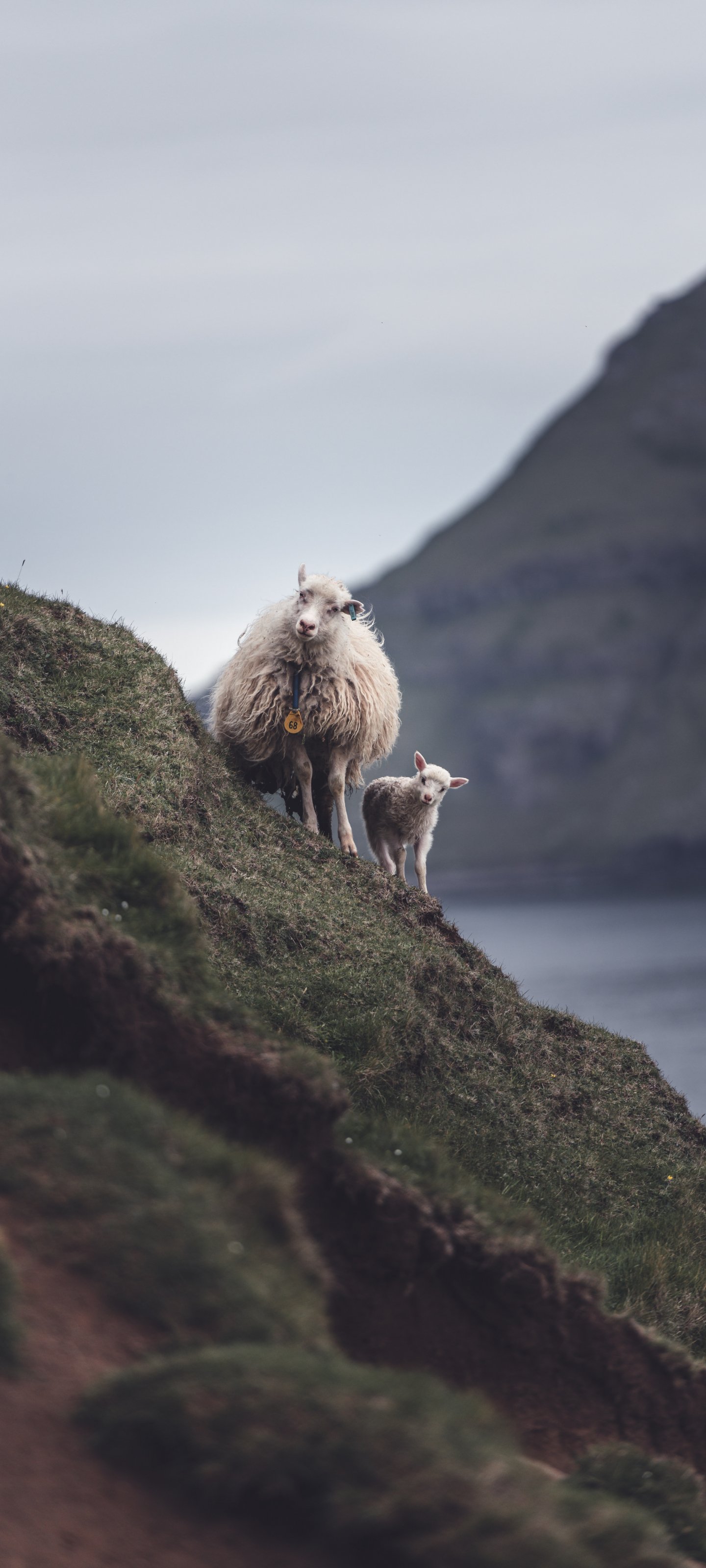 Wallpaper: mountains, sheep, lamb - 1440x3200