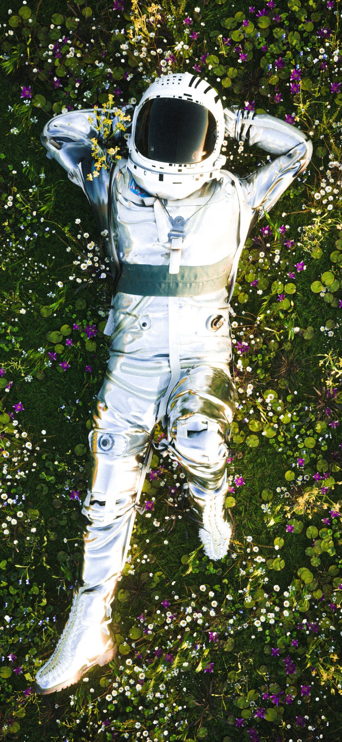 Wallpaper: astronaut, grass, rest - 1125x2436